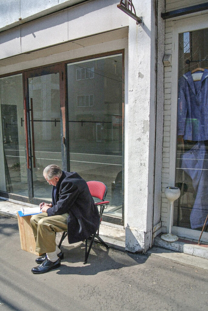 ピエール・フルニエ氏とともに札幌を訪れた、内装を手掛けたフランス人建築家ルイス氏の姿です。