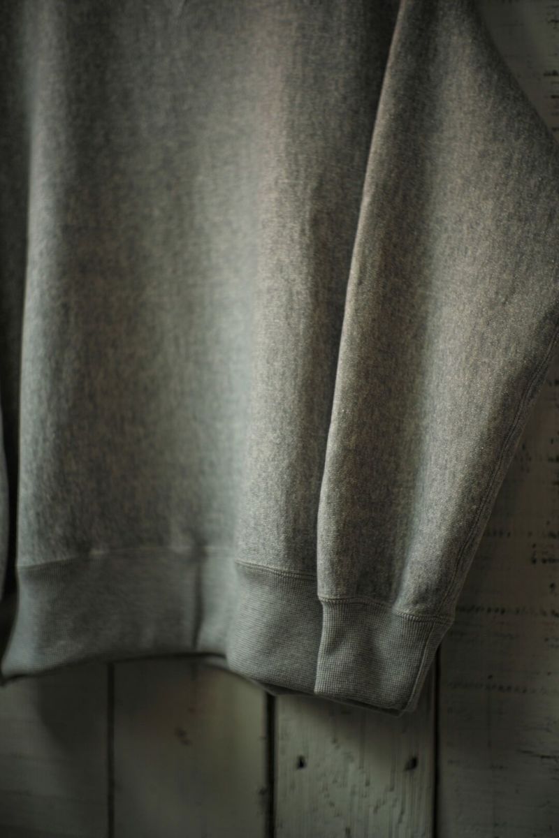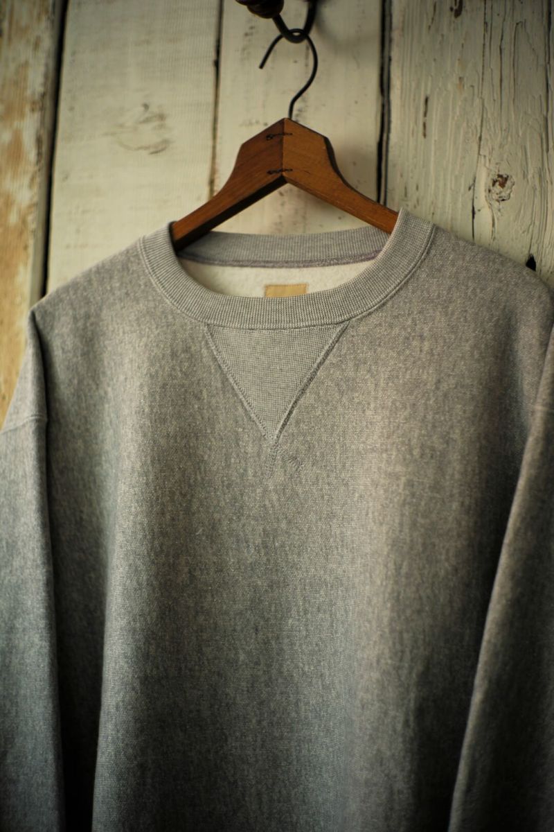 ARCH別注によるSancaの"CREW SWEAT SHIRT - ARCH EXCLUSIVE MODEL -" ヴィンテージのリバースタイプスウェットを元に、前V、身幅やディテールをクラシックな仕様に仕上げた、アメリカの古き良きスウェットをベースに製作された一枚。 生地は、丸編地の産地である和歌山県に現存する数少ない旧式の吊り編機によって編み立てています。糸に余計な負担がかからなく、また生地も強制的に巻きる事なく自然に溜まっていきます。洗い込むほどに実感できる手編み感覚の豊かな風合いがこの素材の魅力です。 カラーは、ベーシックなグレーとオートミールの2色展開です。 COTTON 100% MADE IN JAPAN ※こちらの商品はブログでも詳しくご紹介しております。 https://archstyle.tv/yonemuraya/ Sanca / CREW SWEAT SHIRT - ARCH EXCLUSIVE MODEL - Price ¥20,900(税込)