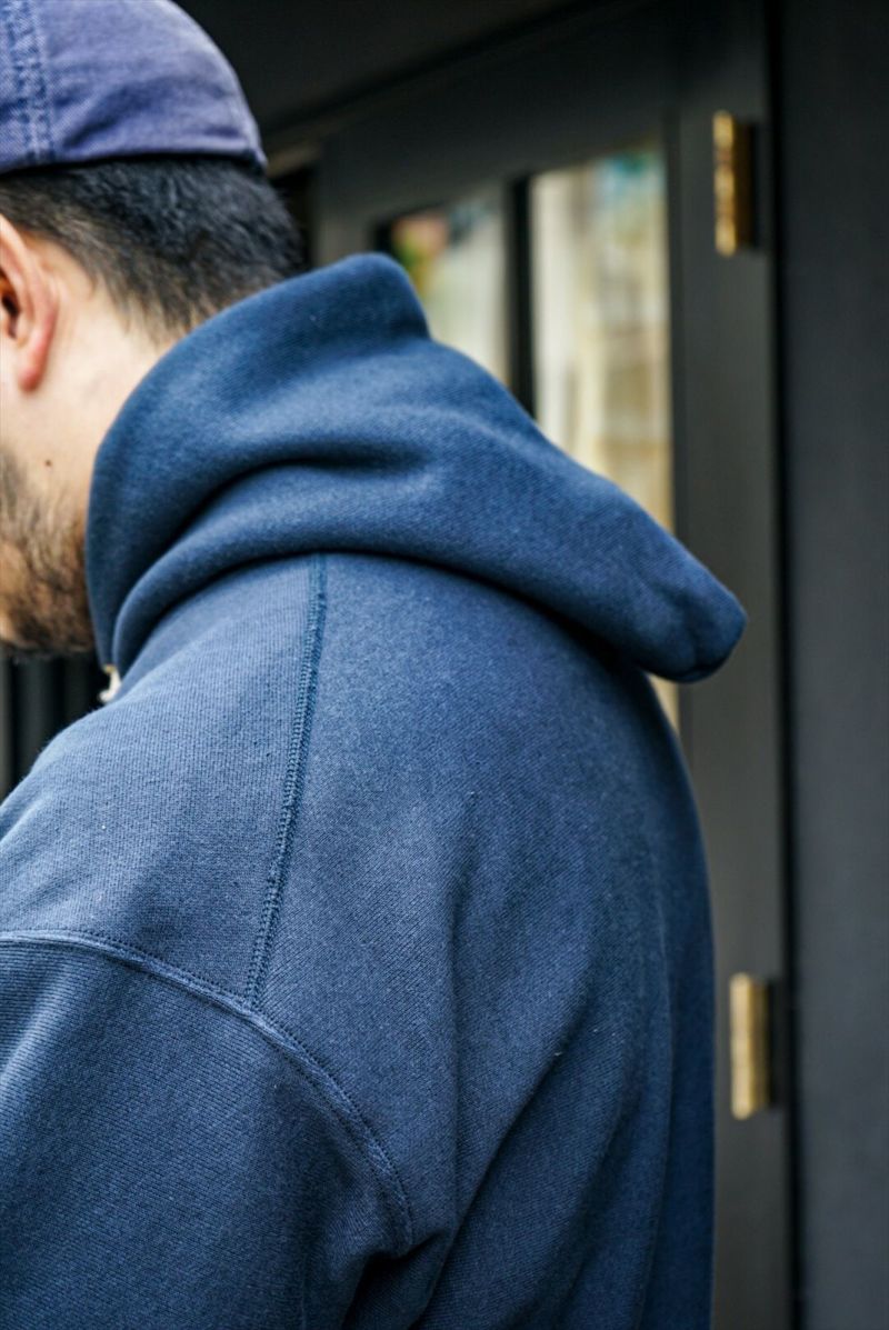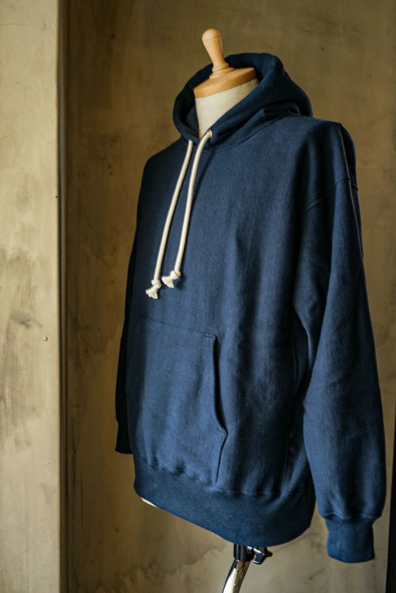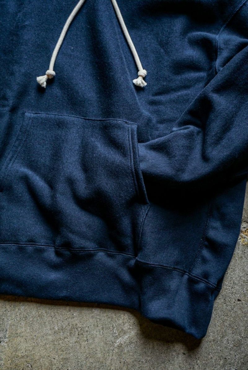 ARCH別注によるSancaの"HOODED SWEAT SHIRT -ARCH EXCLUSIVE-" ヴィンテージのリバースタイプスウェットを元に、前V、身幅やディテールをクラシックな仕様に仕上げた、アメリカの古き良きスウェットをベースに製作された一枚。 生地は、丸編地の産地である和歌山県に現存する数少ない旧式の吊り編機によって編み立てています。 糸に余計な負担がかからなく、また生地も強制的に巻きる事なく自然に溜まっていきます。洗い込むほどに実感できる手編み感覚の豊かな風合いがこの素材の魅力です。 カラーは、ベーシックなグレーとネイビーの2色展開です。 COTTON 100% MADE IN JAPAN Sanca / HOODED SWEAT SHIRT -ARCH EXCLUSIVE- Price ¥24,200(税込)