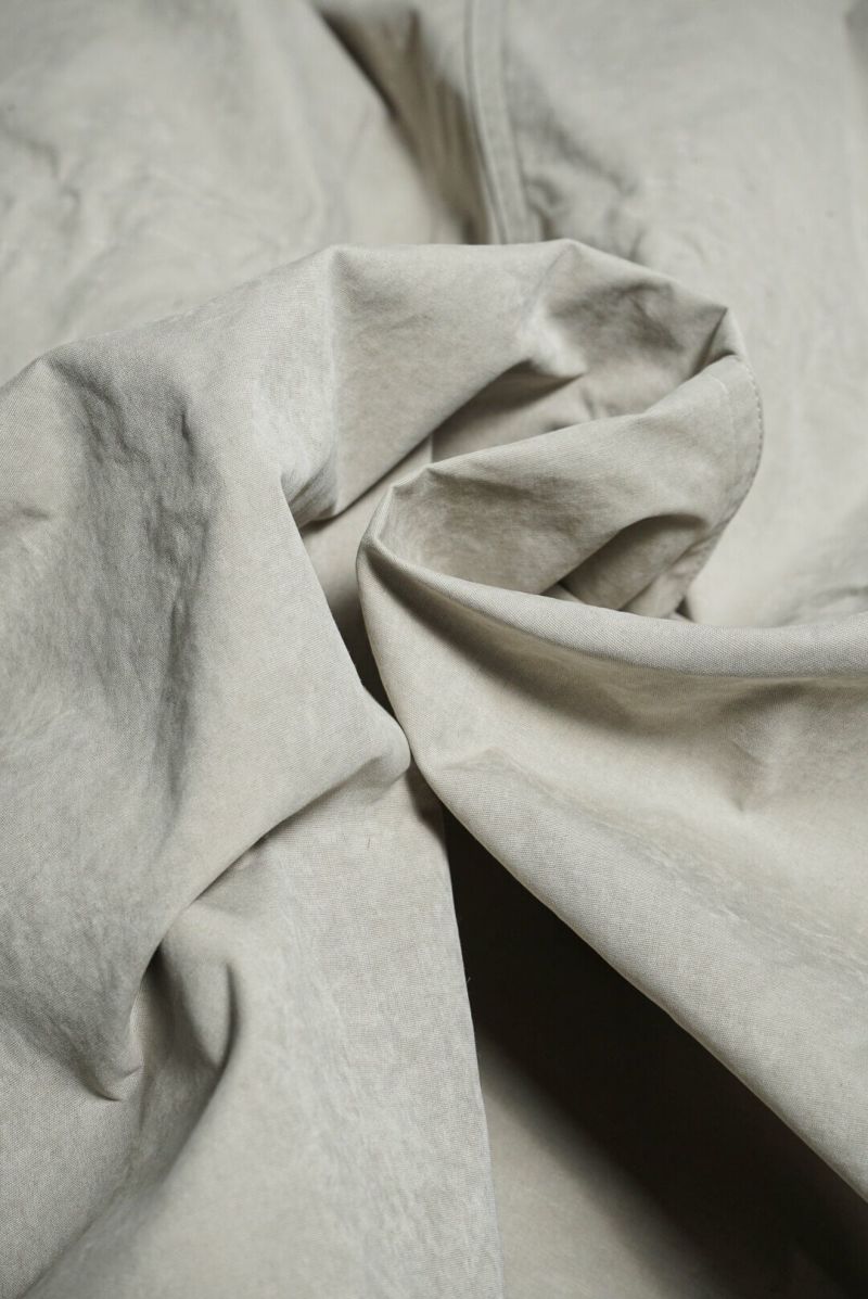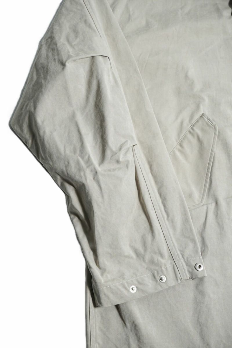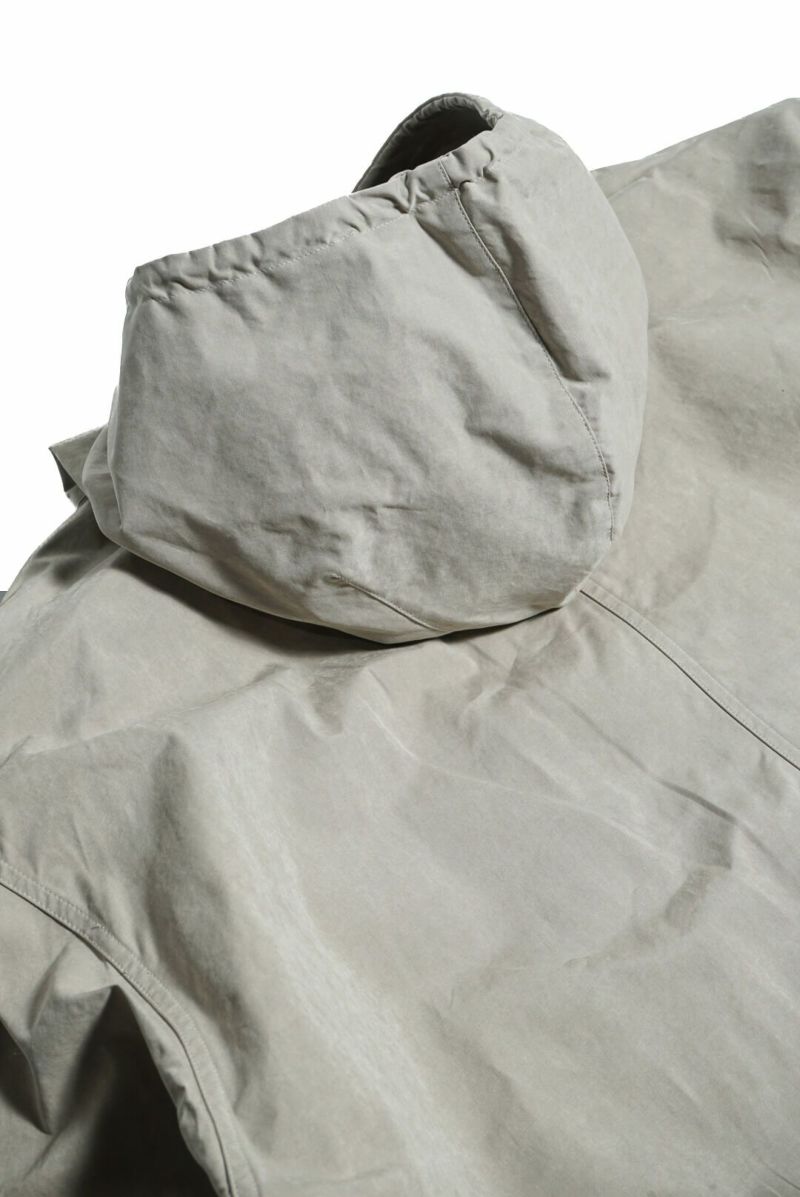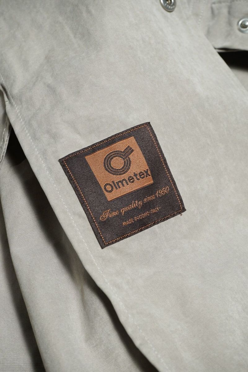 素材には、英国の老舗アウターブランドや各国のメゾンも採用している、名門、イタリア・OLMETEX(オルメテックス)社の生地を採用。経糸にポリエステルナイロン、緯糸にコットンを高密度に織り込んだ生地は、優れた撥水性と防風性を持ちながらも、マッドな風合いとナチュラルな素材感が魅力的です。