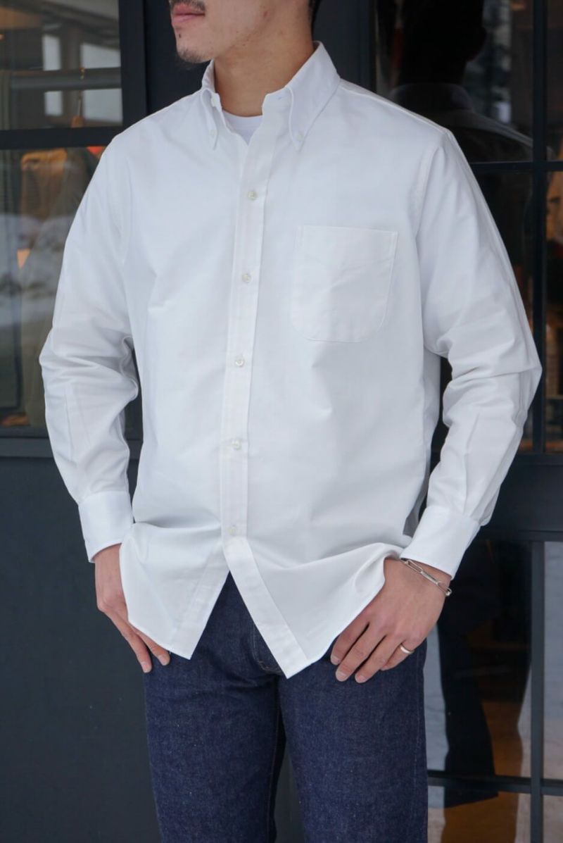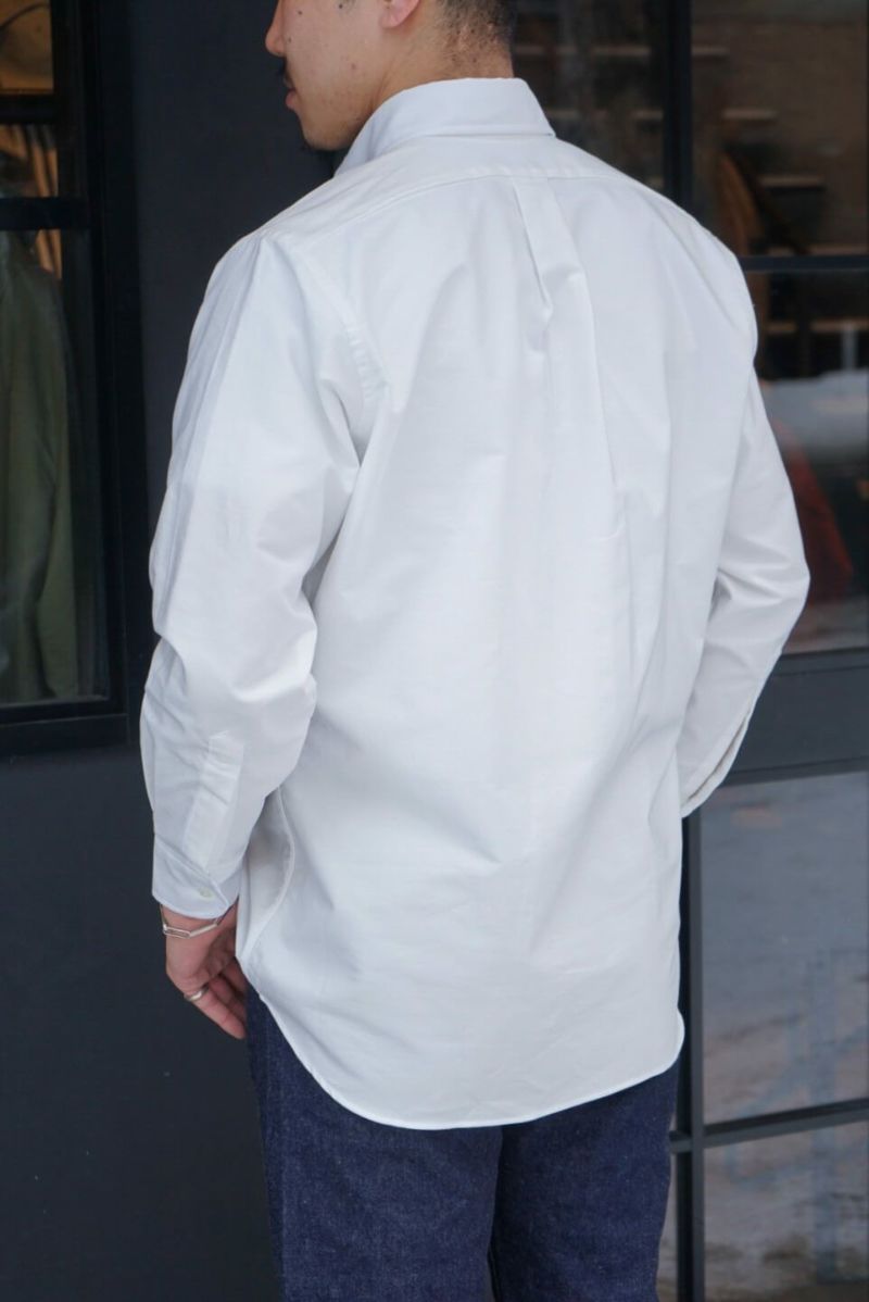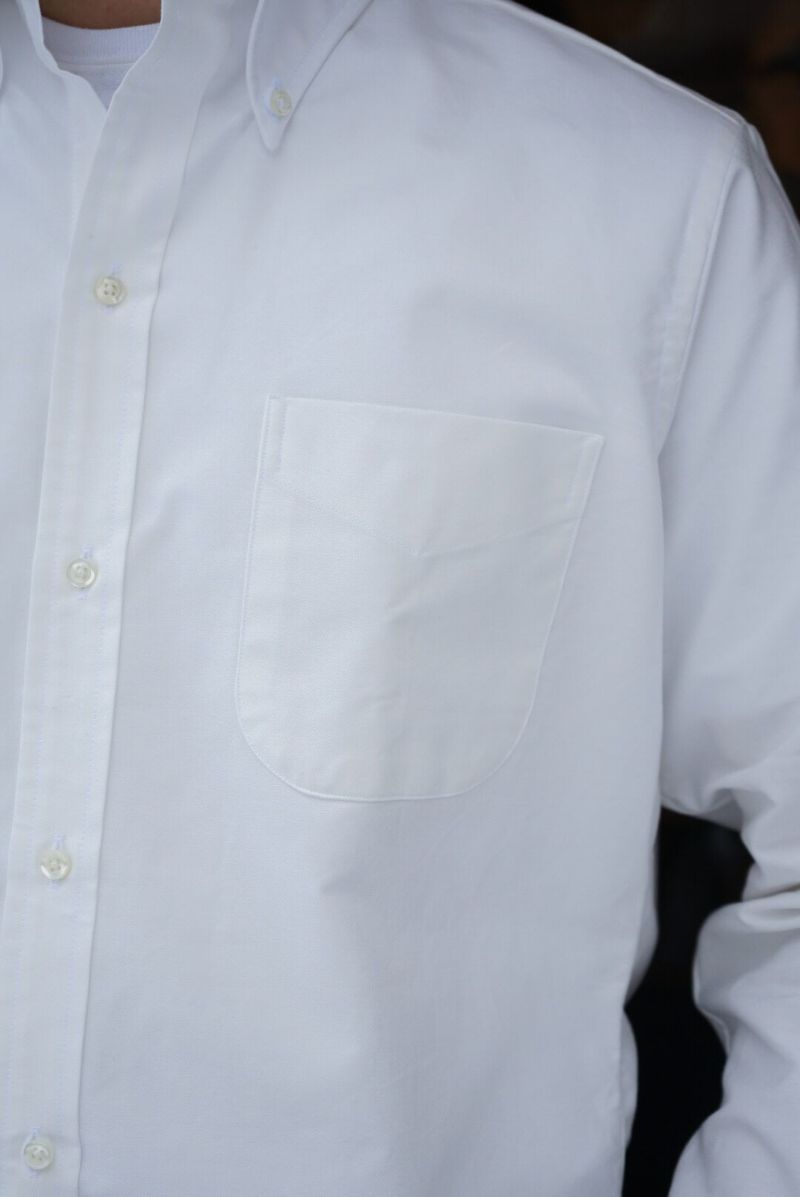 美しい襟のロールと、第1ボタンを外した際の首元の開き具合が絶妙です。さらに、胸ポケットはVの字にステッチが入った通称「Vヘム」ポケット、剣ボロのボタンを「無し」の仕様にすることで、クラシックでアメリカンなB.D.シャツを追求しました。