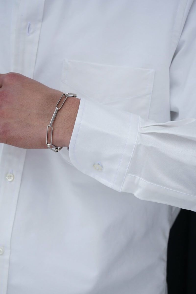 フィットスタイルは"CLASSIC FIT"をチョイス。胸と腕回りにゆとりがありながら適度に絞られたウエストのシルエットは、カスタムシャツメーカーらしさを最も体現したインディビジュアライズシャツで最も古いフィットです。