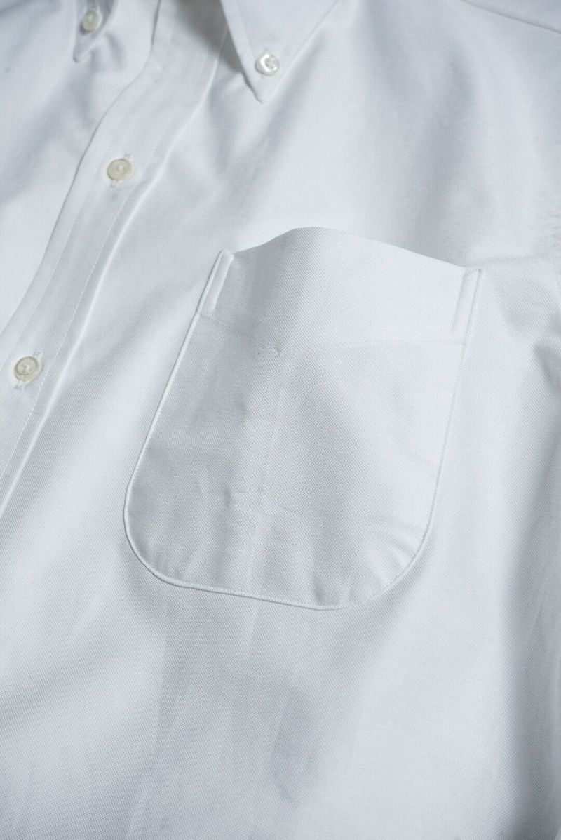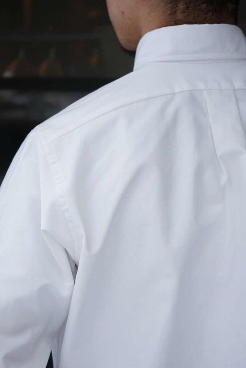 B.Dシャツの原点を作り上げた“B社”の黄金期(1960年代〜70年代)に作られていたB.D.シャツの仕様である「6つボタンのボタンダウンシャツ」をイメージし、通常7つ付くフロントボタンを「6つ」にするという別注をお願いした1着になります。