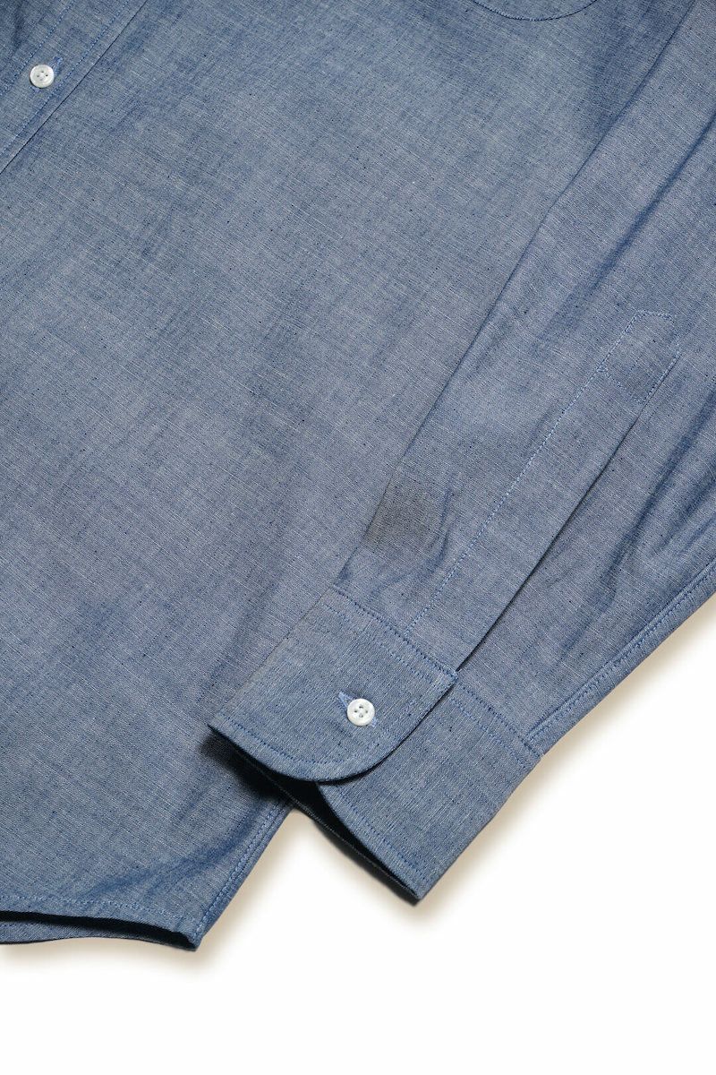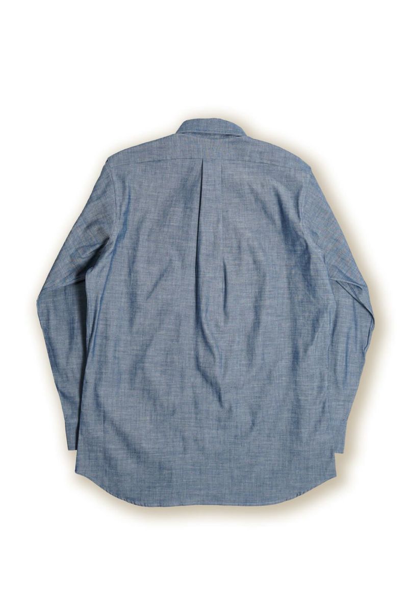 美しい襟のロールと、第1ボタンを外した際の首元の開き具合が絶妙です。さらに、胸ポケットはVの字にステッチが入った通称「Vヘム」ポケット、剣ボロのボタンを「無し」の仕様にすることで、クラシックでアメリカンなB.D.シャツを追求しました。