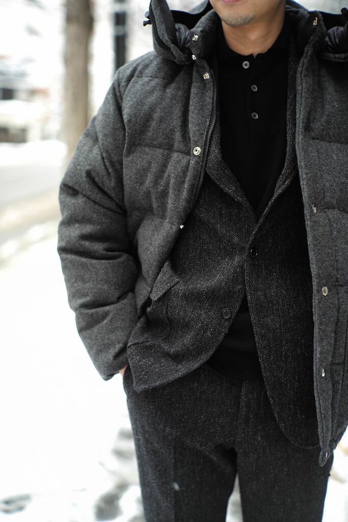 アメリカ・シアトルにて1974年創業のダウンウェアメーカーCrescentDownWorks(クレセントダウンワークス)へ別注で製作したダウンジャケットです。こちらのClassicoDownParkaは丈が長めなクラシックモデル。表地にはチャコールグレーのフランネル素材を使用し、某フランスのダウンメーカーのヴィンテージをイメージしました。裏地には柔らかな質感のStreakFree素材を採用。中綿には、上質なホワイトグースダウン(フィルパワー700)がたっぷりと使用されています。オーセンティックなデザイン、カラーリングで長くご愛用頂ける1着となっています。
