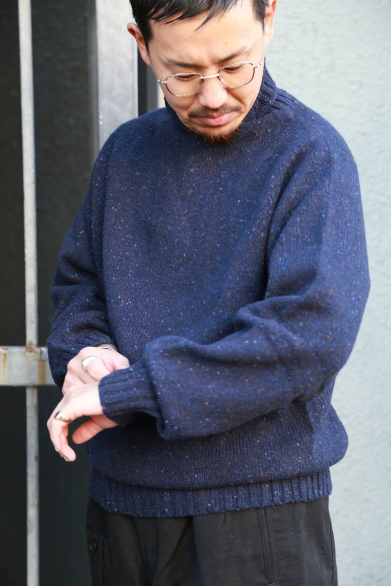 スコットランドで製作したArchオリジナルのタートルネックセーター。クラシックな英国製のニットの象徴でもあるサドルショルダーを採用しています。柔らかく、ブリティッシュツイードのようなネップ感が特徴。着込んでいくことでカシミヤのように柔らかく変化していきます。