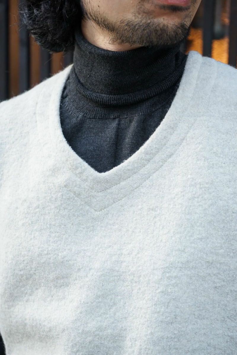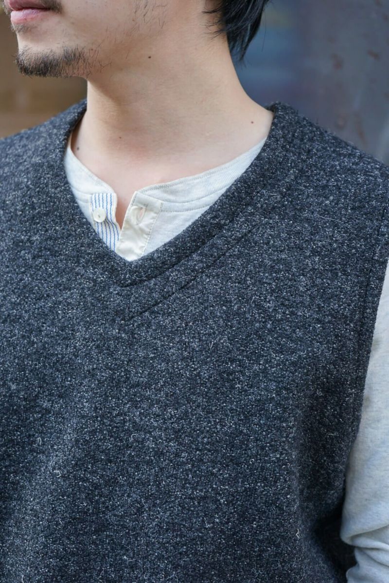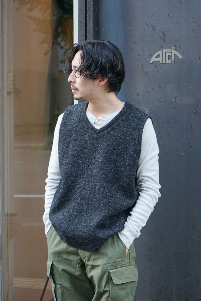 1950年代頃にフランス軍へ支給されていたプルオーバーベストから着想を得て製作された一着。シンプルなデザインは組み合わせるアイテムを選ばず、ジャケットのインナーにも最適です。