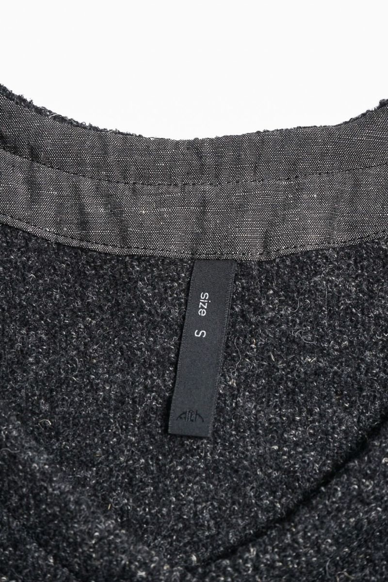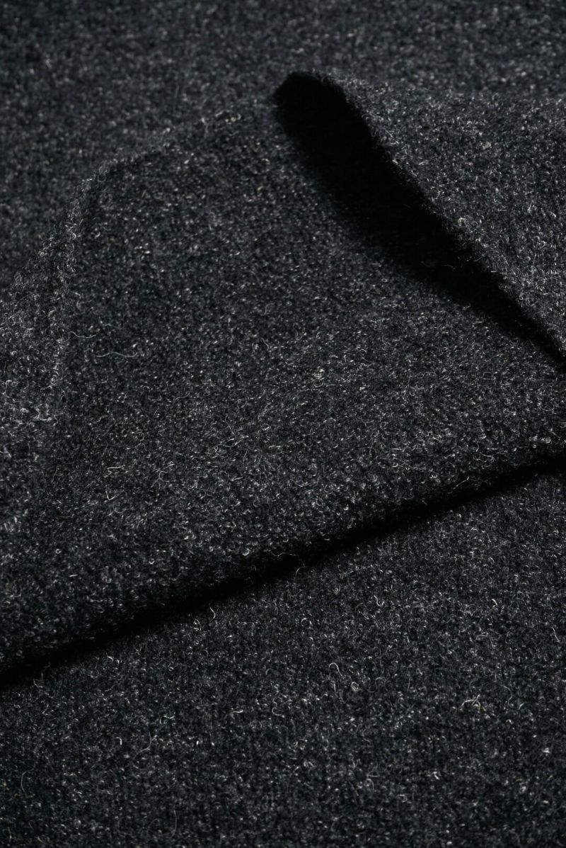 素材は、ウールリネンの混紡糸を横編み機で編み立てた後に、縮絨(フェルト)加工を加えて、保温性、耐久性を高めたオリジナルファブリック。