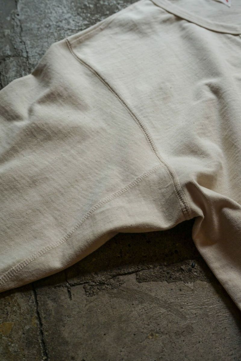 縫製には4本針フラットシーマを用い、袖口はフライスではなく編立の2段リブを採用するなど、細部までオリジナルのヴィンテージを検証したこだわりのつくりです。