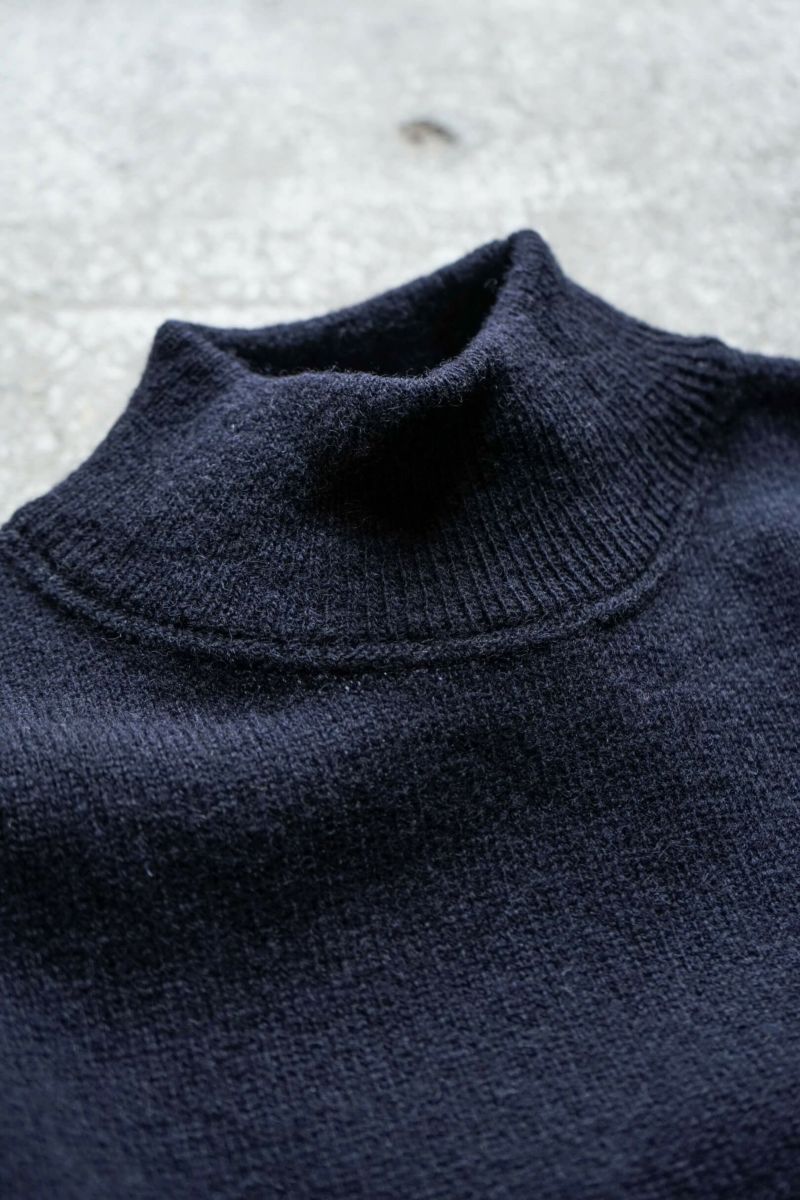 1940年代に米海軍で採用されていた物をベースとしたMSG & SONSのゴブセーター。長めのリブに対して、若干短めの袖丈、着丈、さらに袖口、裾口に向かって急に細くなる特徴的なシルエットを捉えた仕様となっています。ハリ感とドライタッチな質感が特徴の紡毛紡績ウール糸と梳毛紡績ウール糸をあえて混紡して使用したオリジナル糸を完全別注で製作。