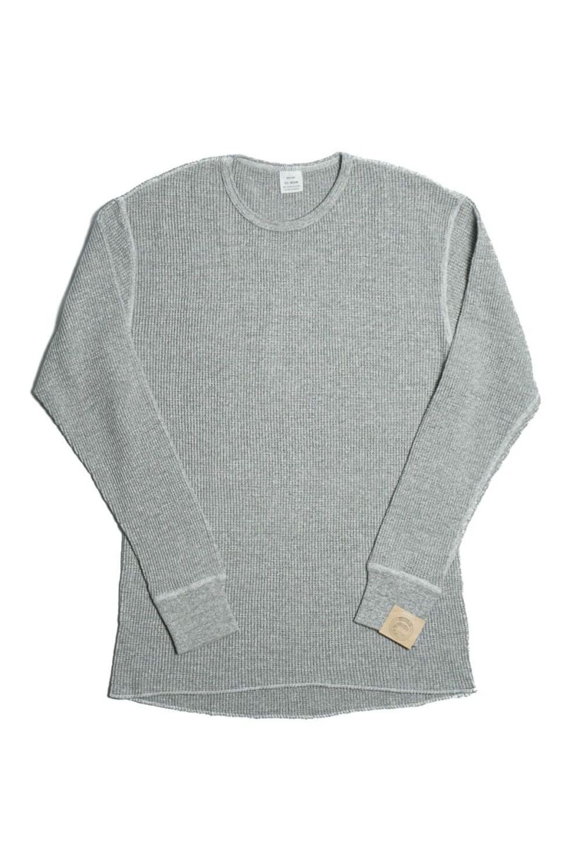 某アメリカンアスレチックウェアブランドの名作である、通称 “88/12″(ハチハチワンツー)ボディのTシャツから着想を得た「サーマルシャツ」。“88/12″ボディとは、コットン88% / レーヨン12%の混紡糸からなる生地であり、独特の杢感と、肉厚でありながらもレーヨン混による柔らかな質感が特徴です。