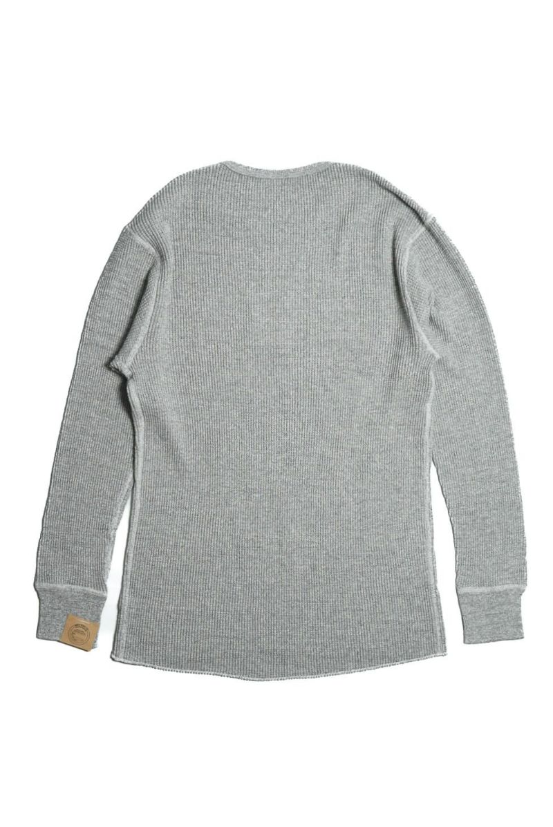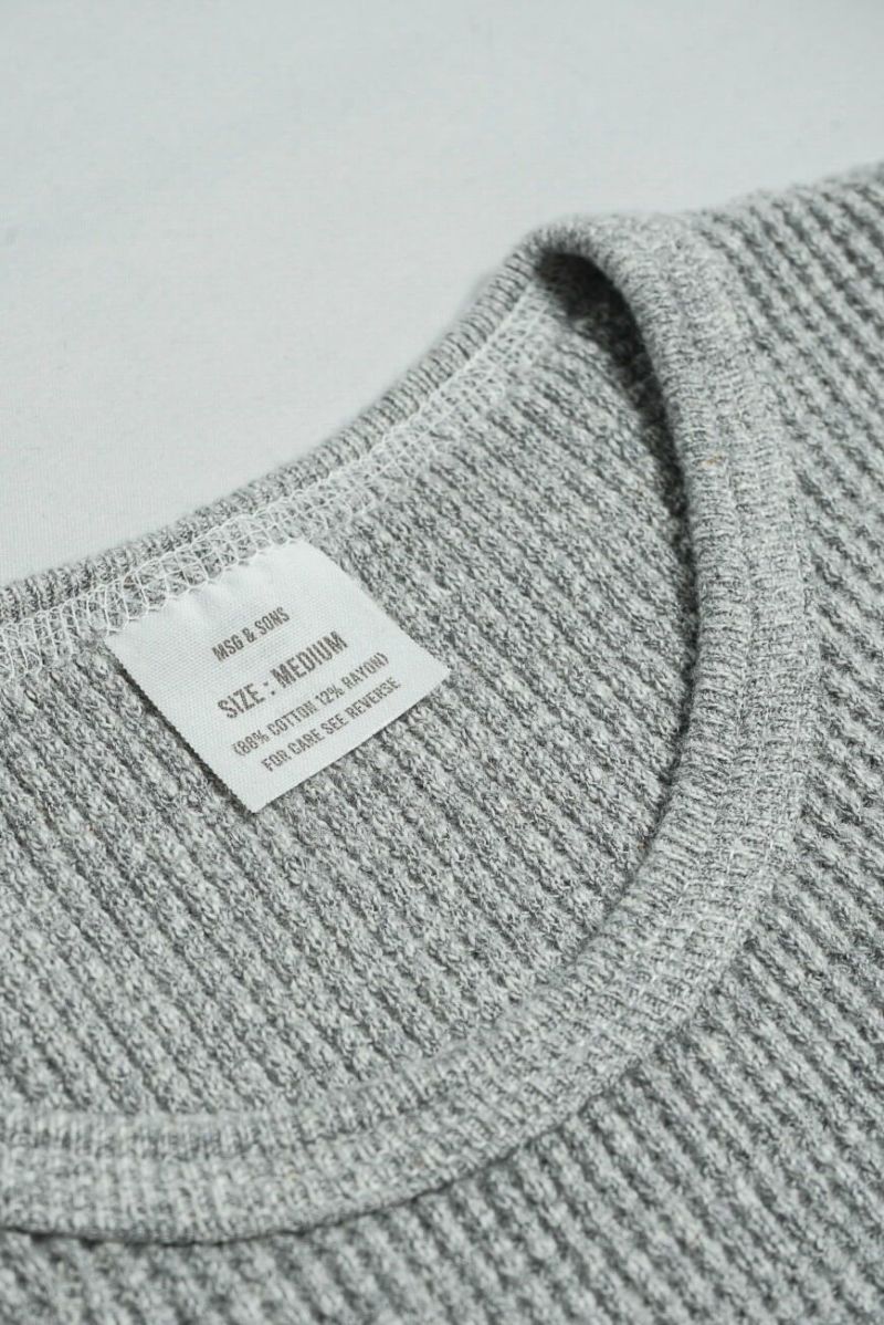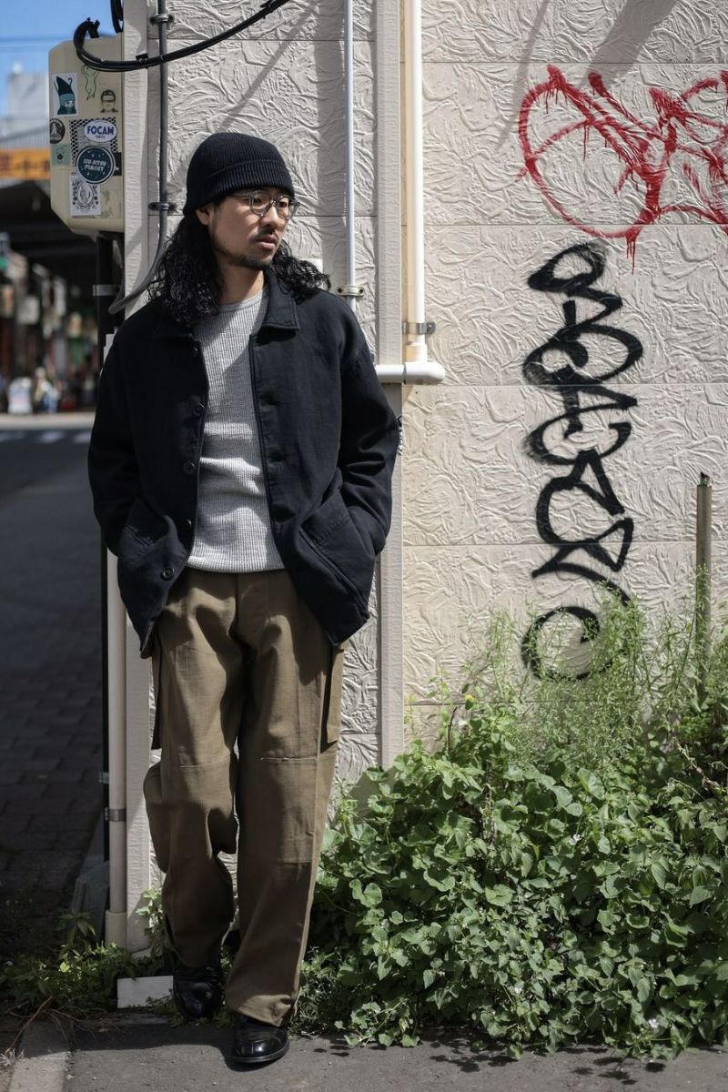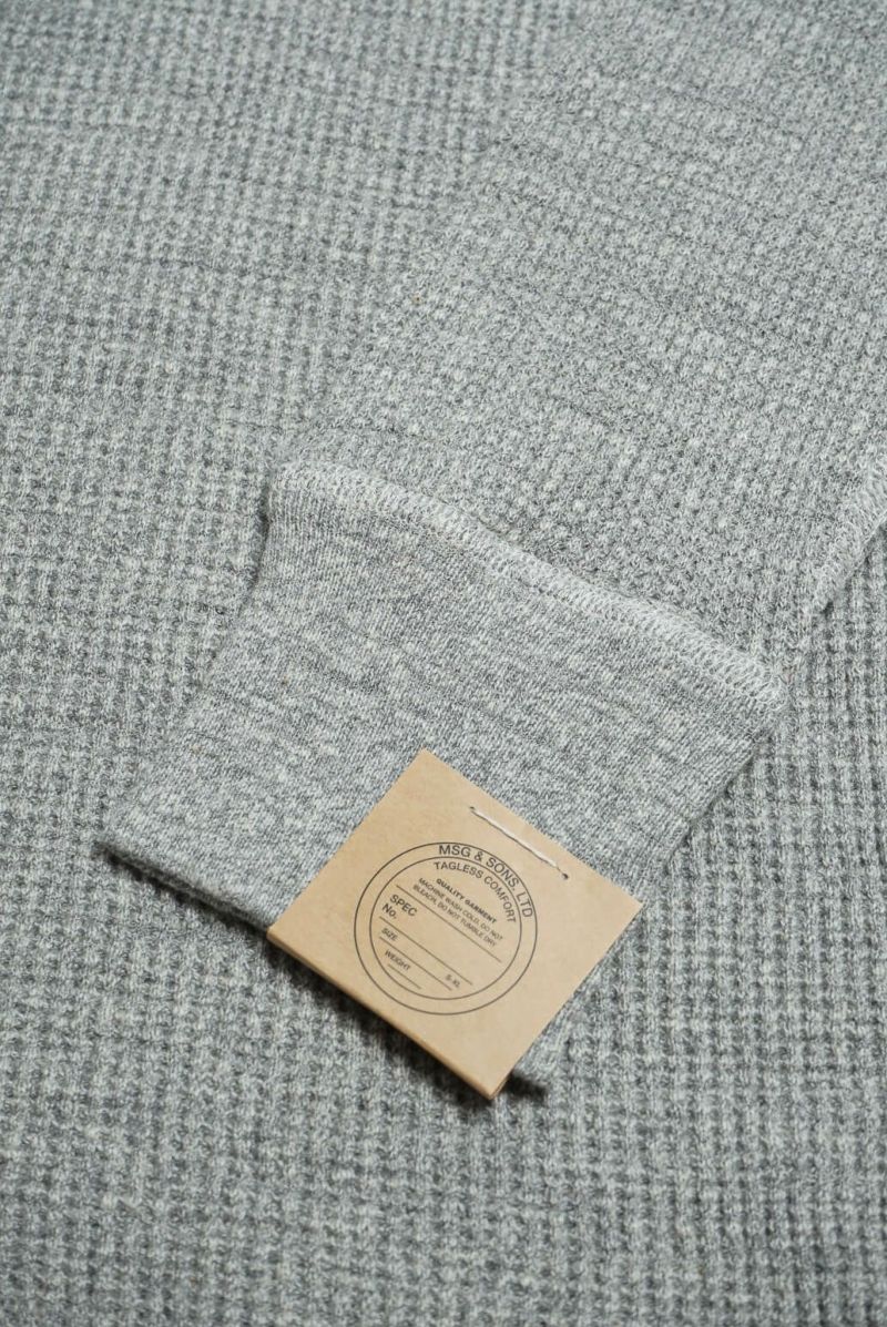 今回、米綿を用いた “88/12” 糸をゼロからオリジナルで開発。トライ&エラーを繰り返しながら約3年の歳月を経て、ようやく理想とする糸が完成し製作に至りました。サーマルの組織やシルエット、リブの仕様はアメリカ製のヴィンテージをベースにアップデートを施し、アンダーウェアとしてはもちろん、1枚でも着用できるサーマルシャツとなっています。