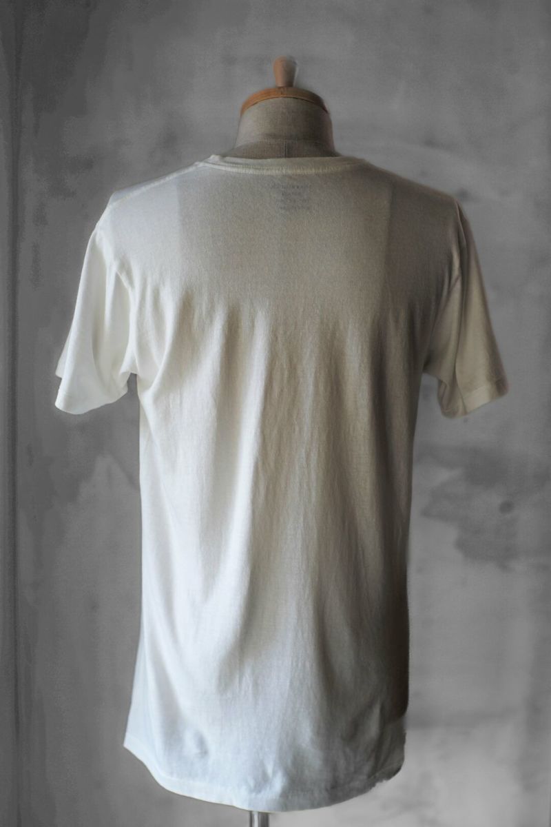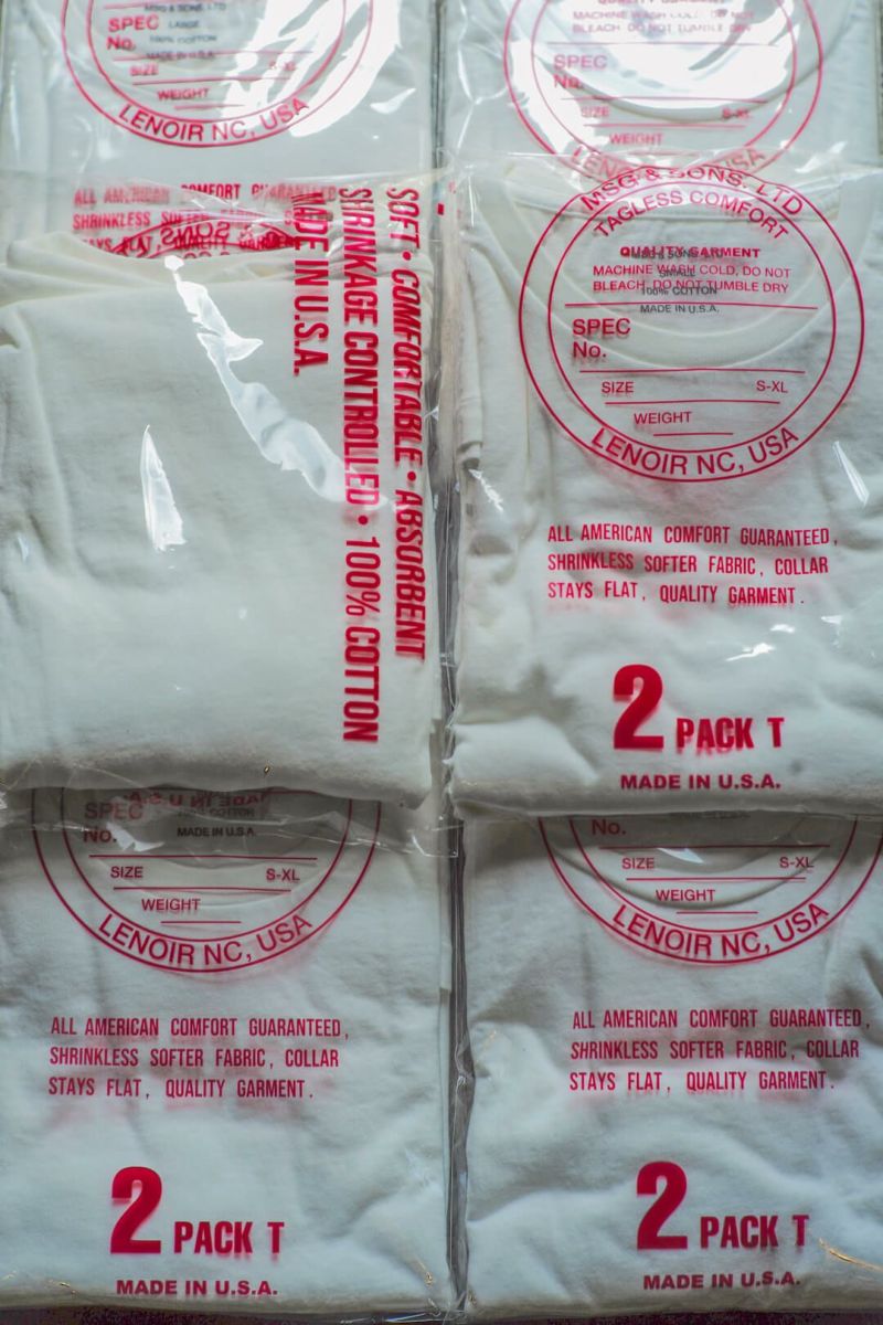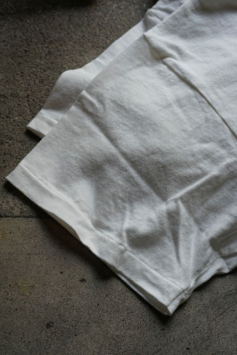 サイズスペックは何度もサンプル修正を繰り返し、日本人の体型に合うように細かく調整。仕上げにワンウォッシュを施しており、洗濯によって大きく縮む心配もありません。裾、袖の縫製は、ヴィンテージのTシャツに多く見られ、現在では希少となった天地引き(シングルステッチ)を採用。アメリカのカルチャーとも言えるパックTをMSG&SONSとしてアップデートして表現いたしました。
