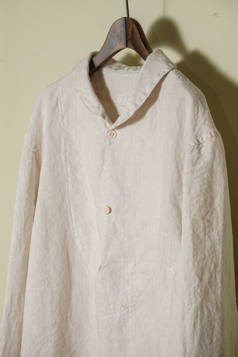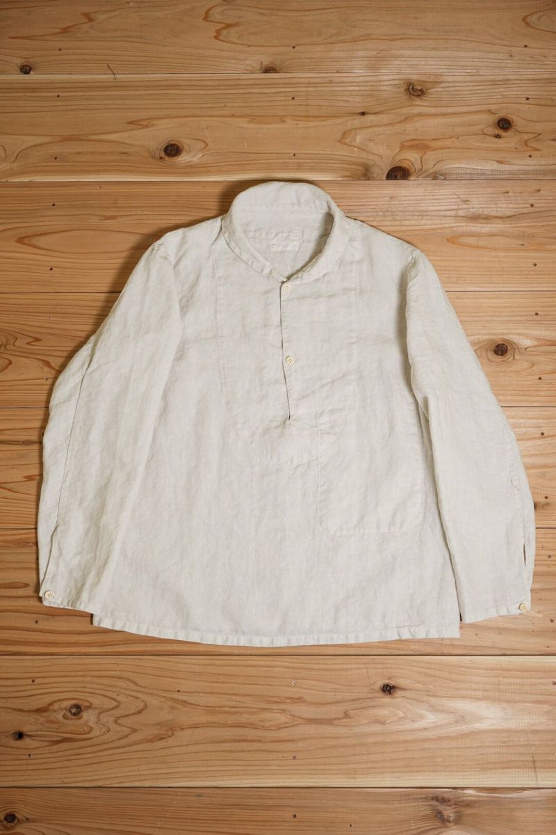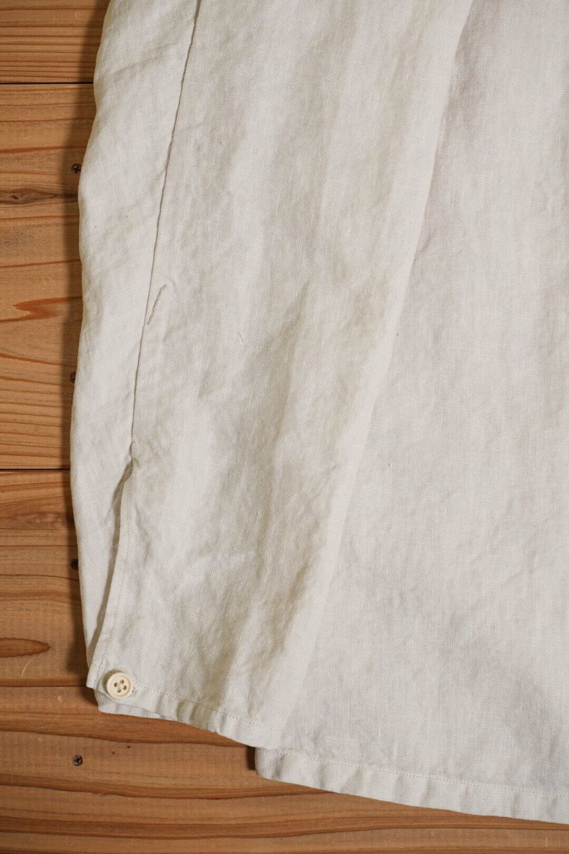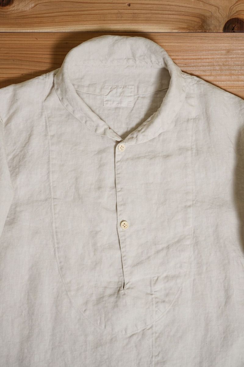 長い年月を経て変化したリネン生地の色合い、風合いを忠実に再現することに着目した「Discoloration = 変色」シリーズのセーラーシャツ。