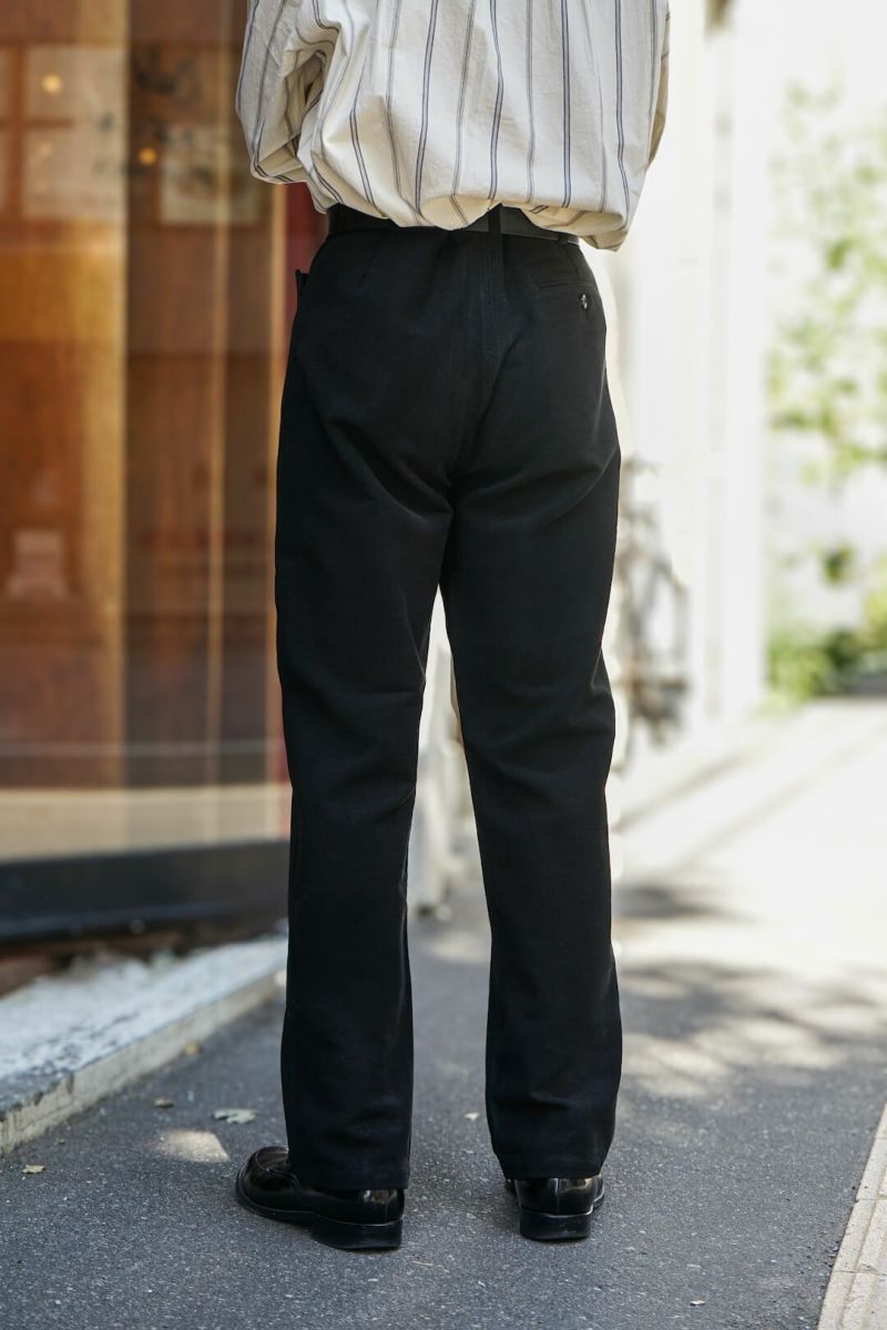 素材は、英・. ウェスト・ヨークシャー地方にて1800年代創業の老舗生地メーカーのブラックモールスキン生地を採用することで、シックな雰囲気でコーディネートに取り入れることができる仕上がりを目指しています。