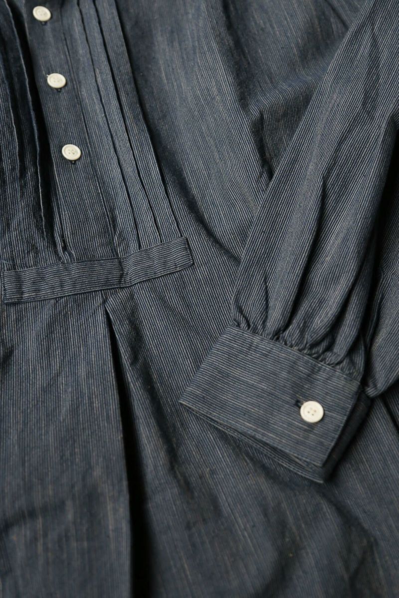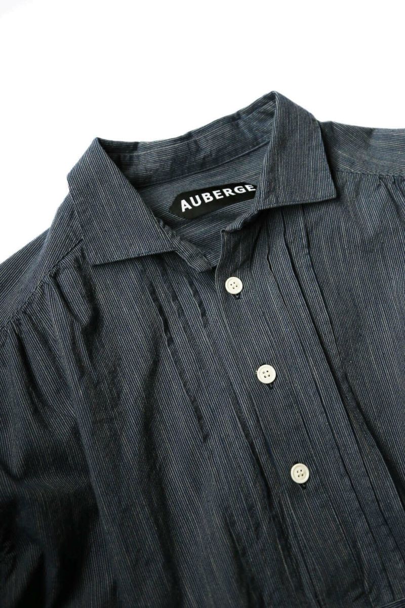 AUBERGE新作のHENRIは、フレンチヴィンテージに見られるBIAUDEのデザインをベースに、再構築した一枚です。当時のヴィンテージは、手作業で細かいギャザーを多く入れていましたが、そのディテールも再現しています。