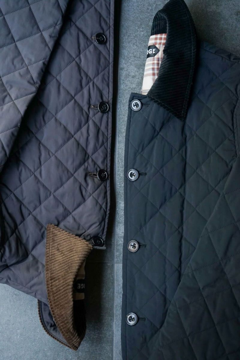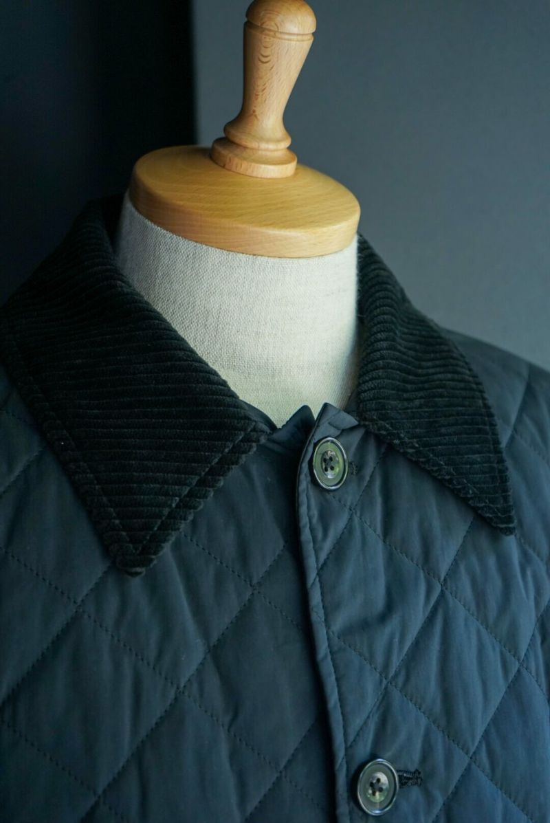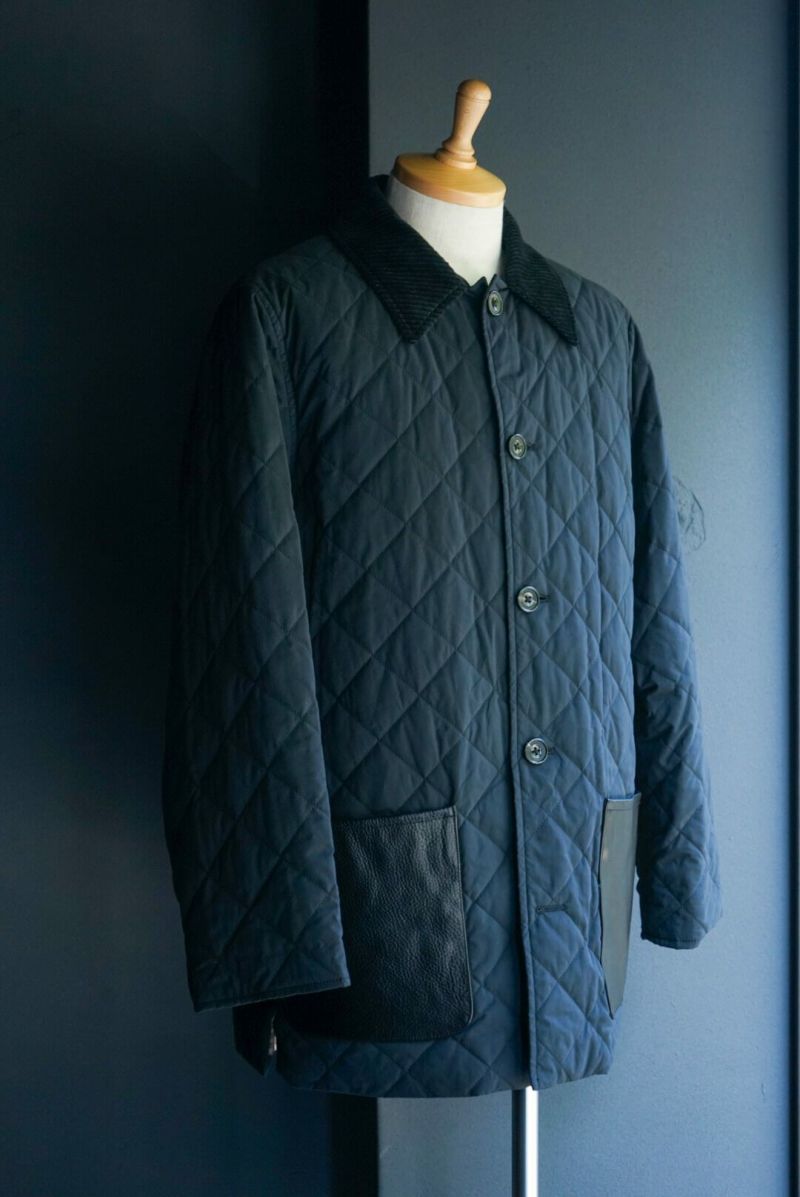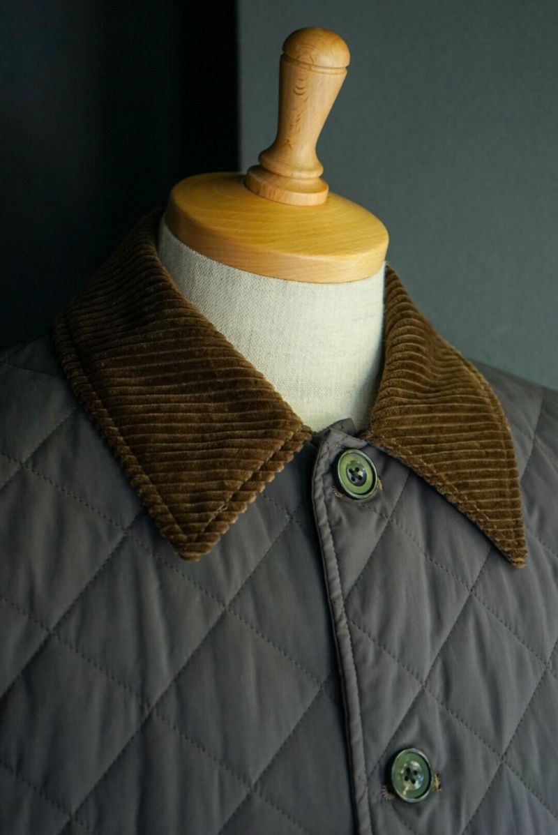 その当時の割繊技術を使ってフランス伝統のスクエアキルト素材に加工し、当時パリを席巻していたH社のキルティングJK風に仕上げました。襟には英国ブリベンモスのコーデュロイ、さらにサイドスリットも施されています。