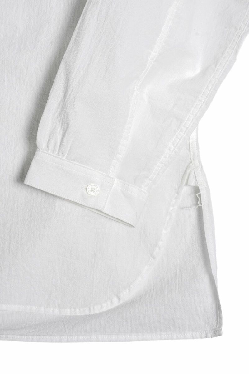 ミリタリー用スリーピングシャツをモチーフにデザインされた、クルーネックのプルオーバーシャツです。素材は強撚糸を使用した、シアサッカー素材。ペーパーライクなドライタッチで、夏場に最適な素材です。