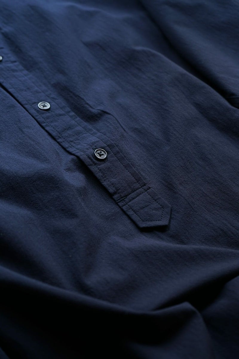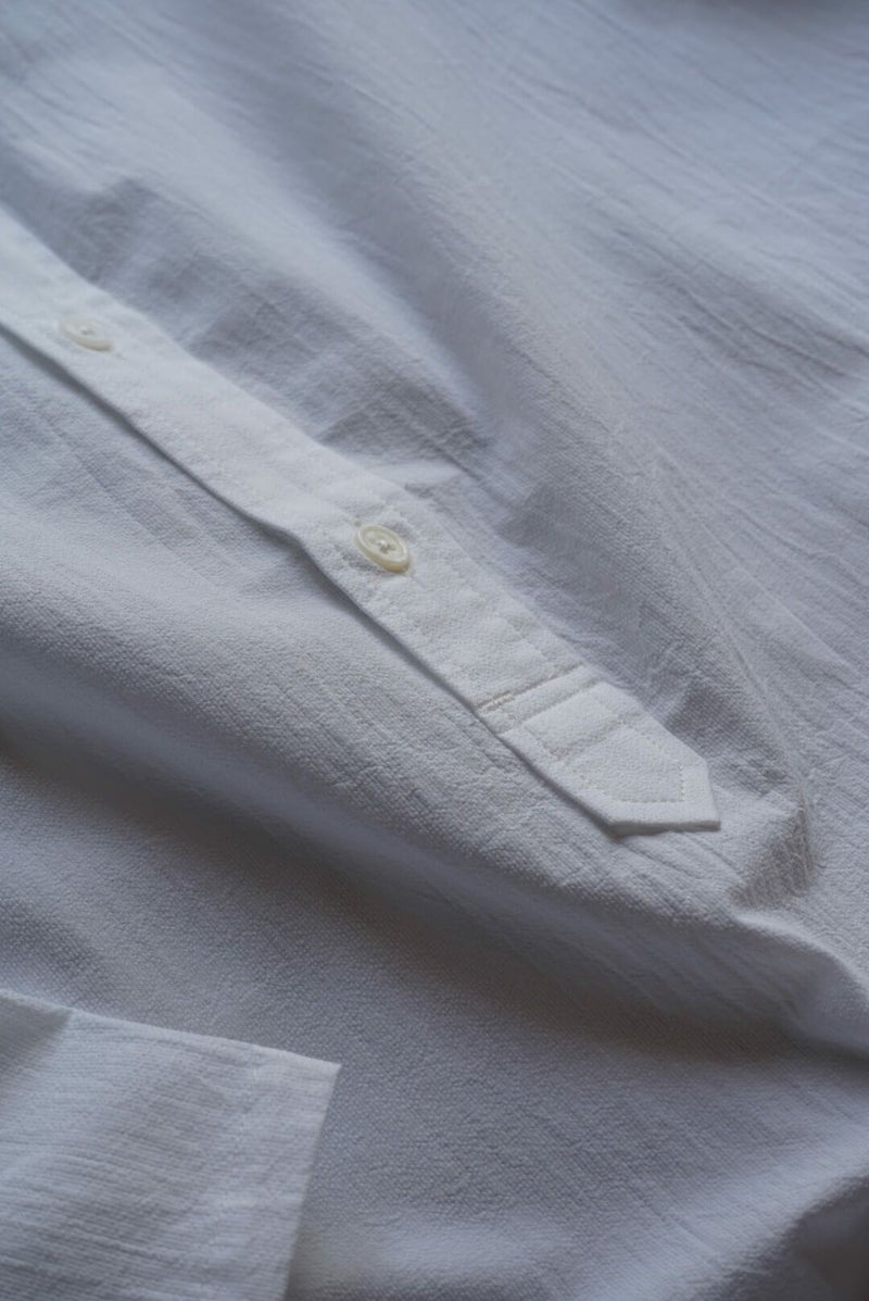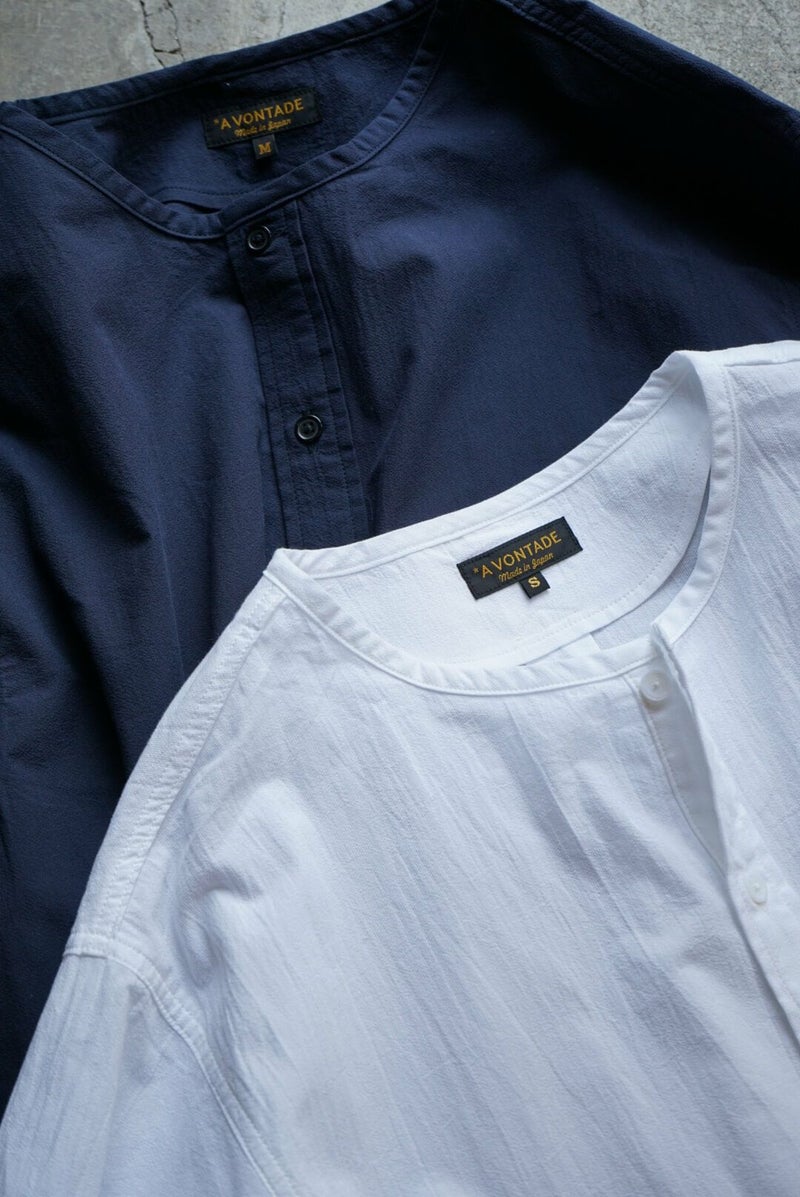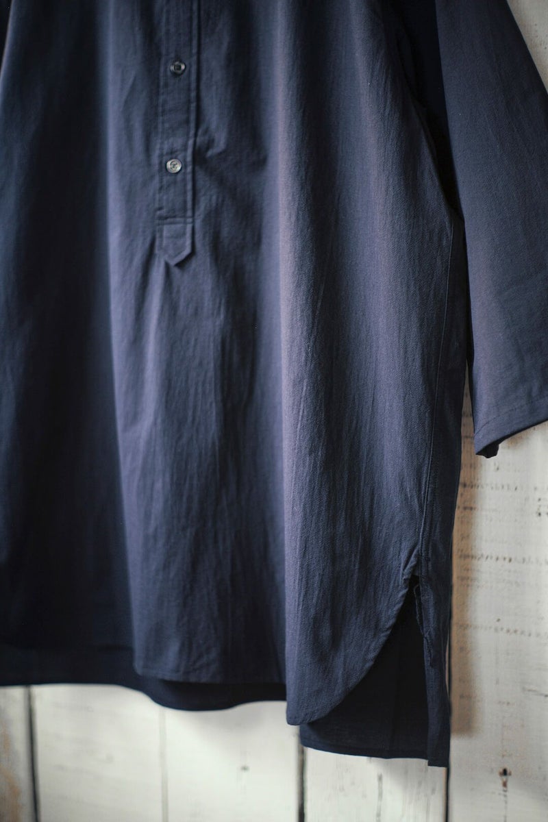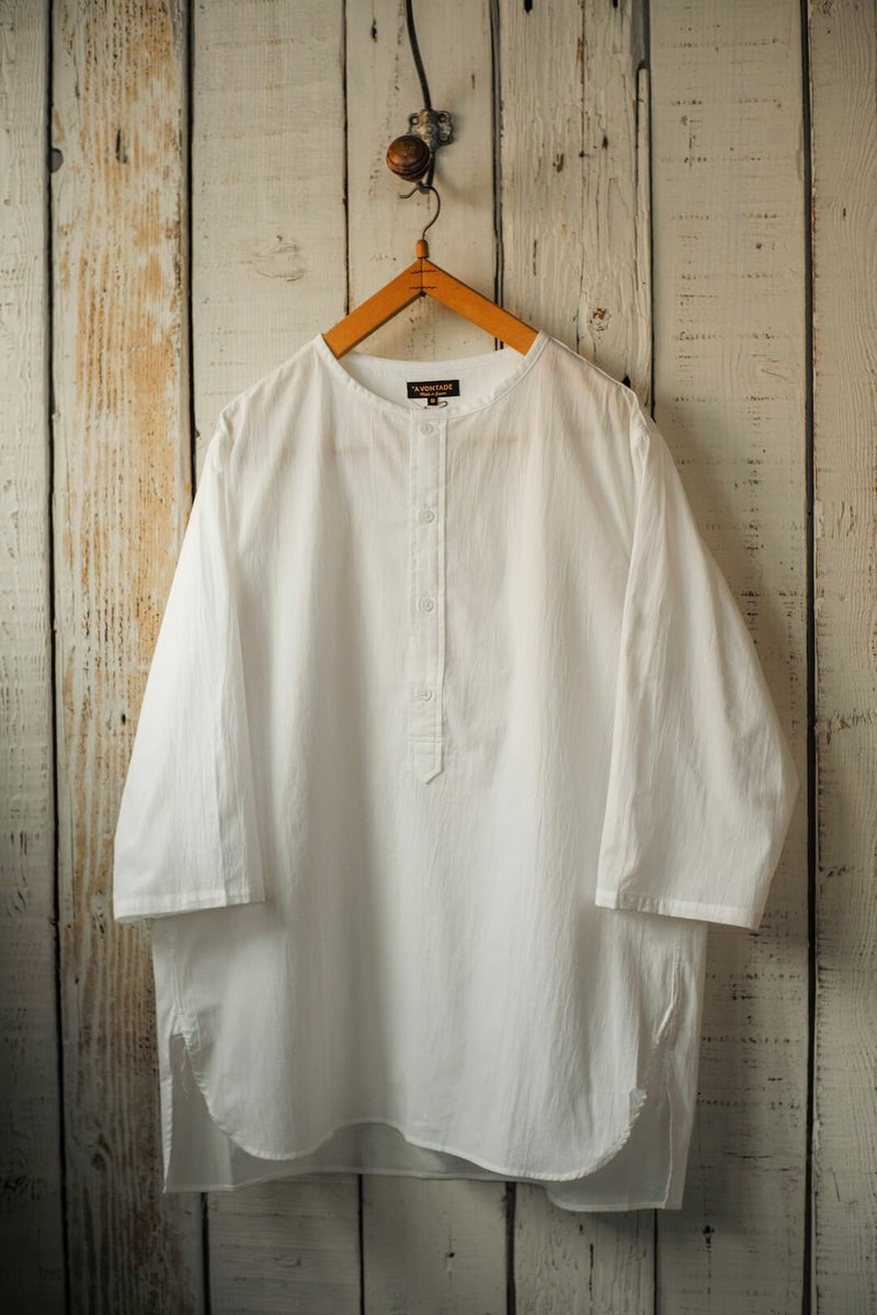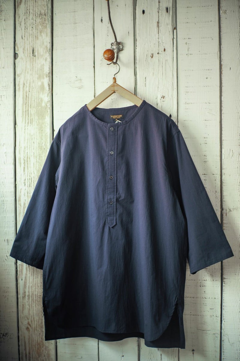ミリタリーのスリーピングシャツをベースにした、3/4スリーブのプルオーバーシャツ。 素材には強撚糸を使用したシアサッカー素材を使用しています。 ペーパーライクなドライタッチで夏場に最適な素材です。 半袖ではなく7分袖という点もこのシャツの魅力の一つ。 カットソーよりも上品に着れ、夏の一枚としても活躍してくれでしょう。 A VONTADE SLEEPING SHIRT 3/4 SLEEVE PRICE ¥20,900(税込)
