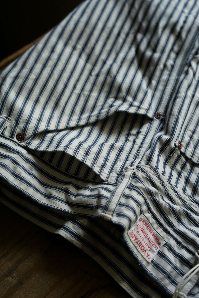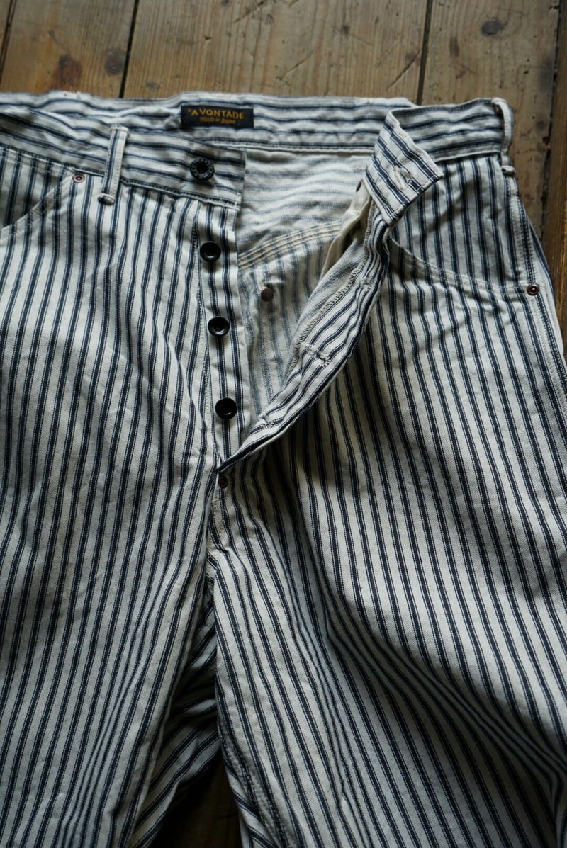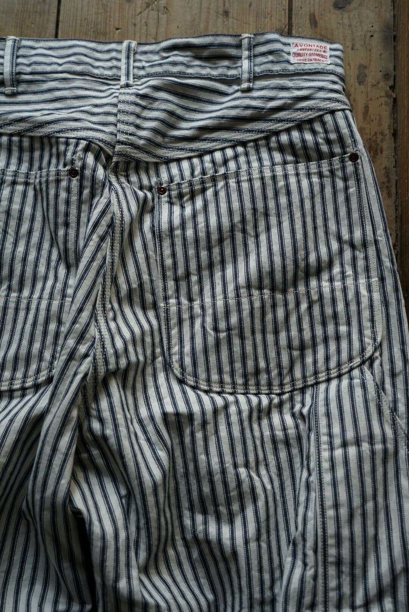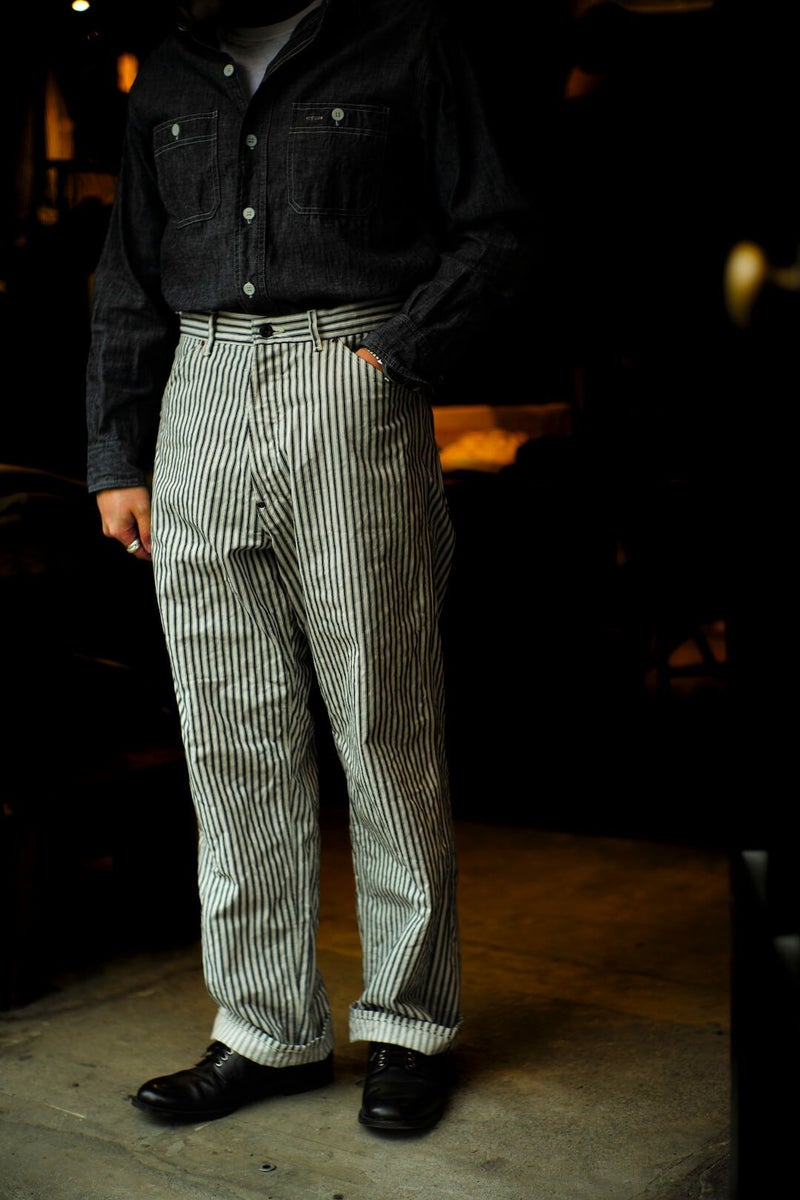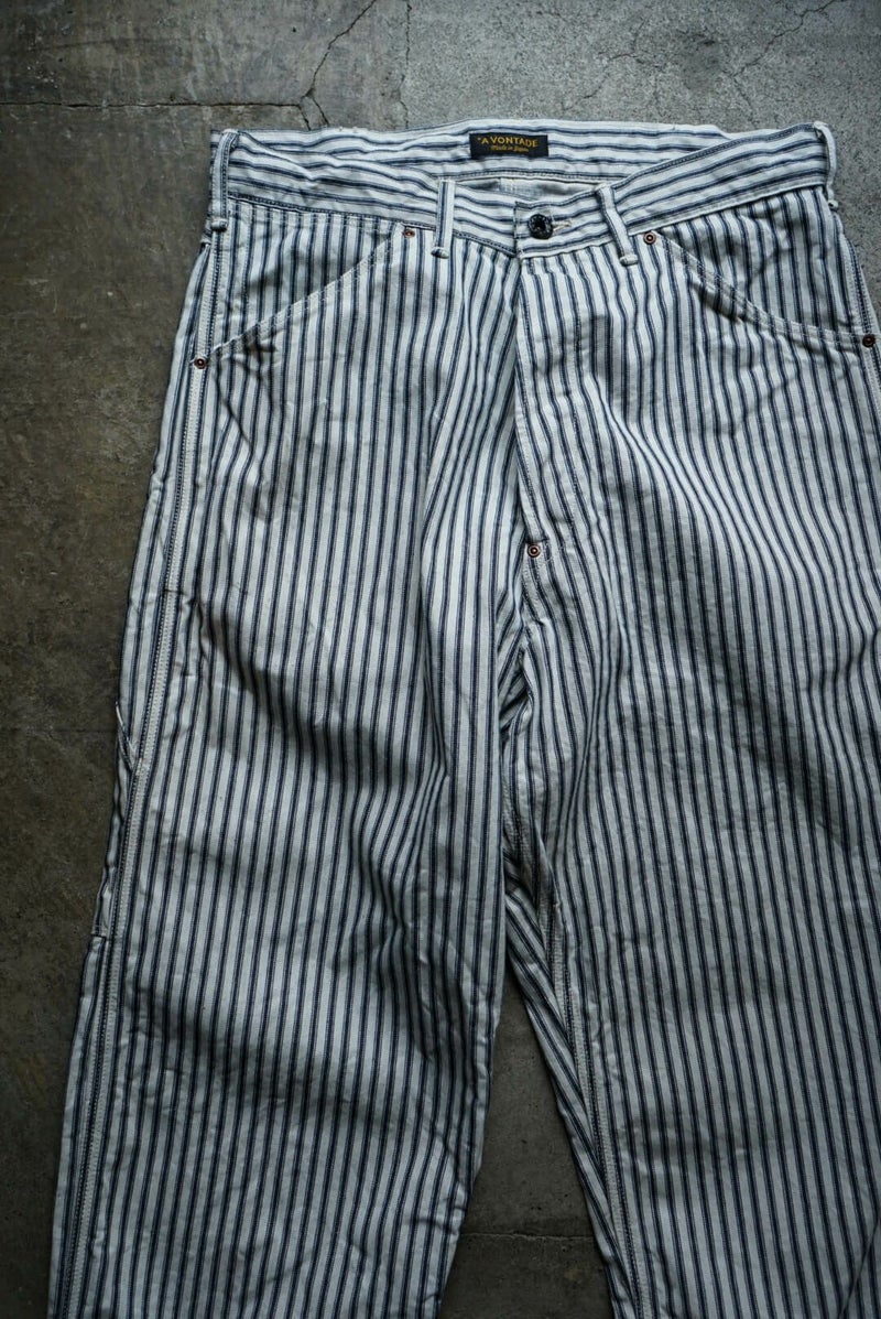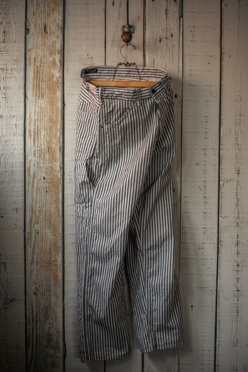 ARCH別注にて製作した"PAINTER PANTS" 過去のアーカイブモデルを復刻し、素材にはARCH米村屋が提案するアメリカンスタイルを感じるモノを落とし込みました。 アメリカらしいヒッコリーの素材は、ワークウェアーらしく直球に無骨さを表現しています。 通常のヒッコリーよりもネイビーの色味が強くないので、良い意味で抜け感があり合わせやすい一本に仕上がっています。 COTTON 100%