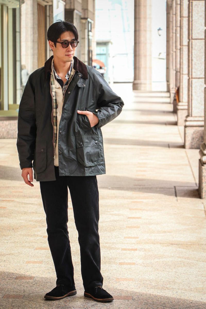 バブアーを代表する永世定番モデル「ビデイル」。もともと乗馬用ジャケットとして生み出され、優雅なライディングポーズを崩さない着丈の長さやスナップボタン仕様のサイドベンツは裾周りを美しく保つことができるデザインです。当時の実用的なディティールが、今ではデザインアクセントとして生かされています。