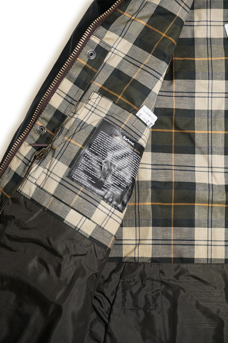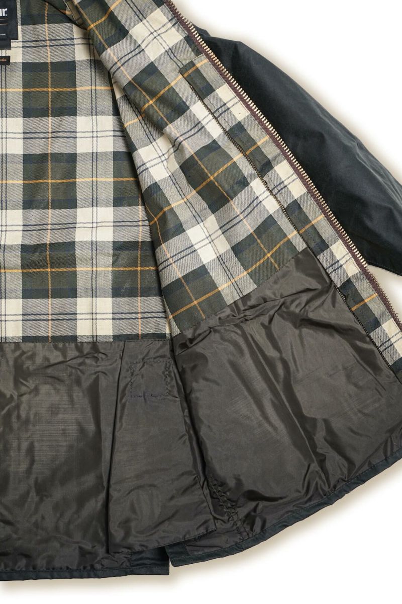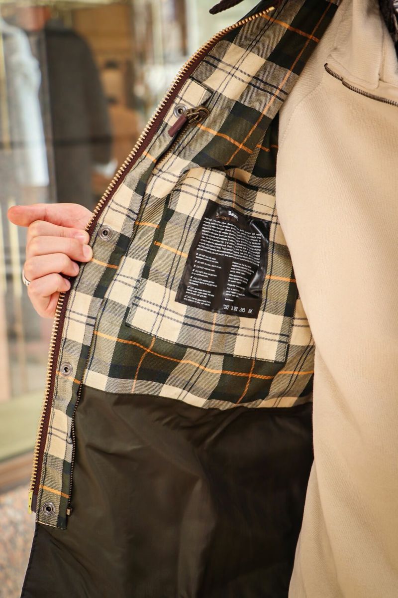 さらに伝統的デザインであるコーデュロイの衿はスナップボタン付きチンストラップを備えており、衿を立てた時もしっかりホールドし、首回りを暖かく保つことができます。裏地にはバブアーの伝統の証であるハウスタータンをあしらっており、人目を引くディティールも人気の一つです。