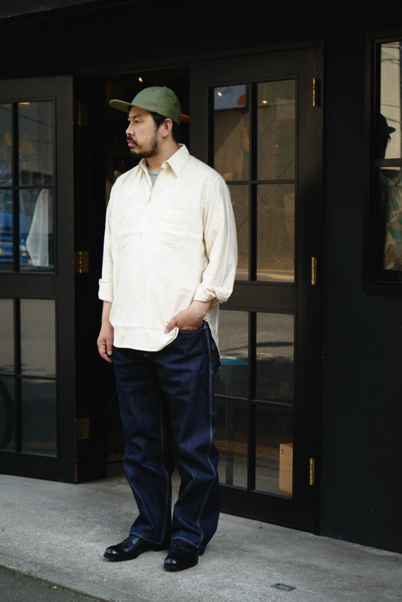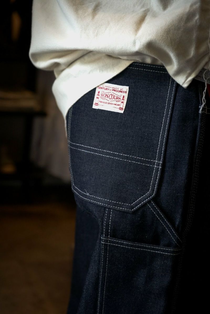 アメリカのワークパンツの象徴とも言えるペインターパンツを、ボンクラ流の解釈で仕上げた一本。生地は原綿の産地や配合、撚糸等紡績の部分からこだわり、ピュアインディゴにこだわり限界まで濃色に拘った染色、旧式のBONCOURA特別仕様力織機による機織りと生地部分から妥協無くのすべての行程をこだわり抜いて作り込まれたBONCOURAオリジナルイケ綿デニム生地を使用しています。
