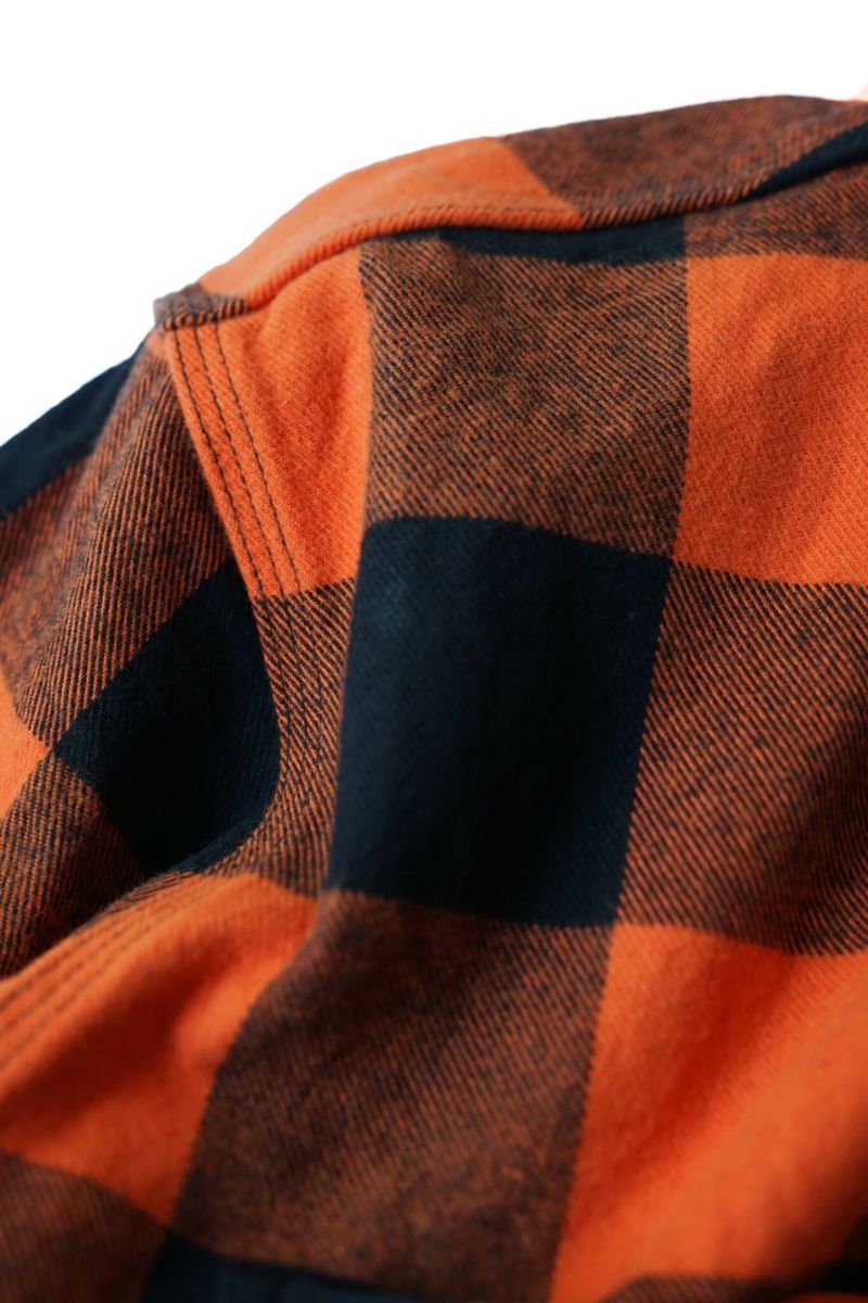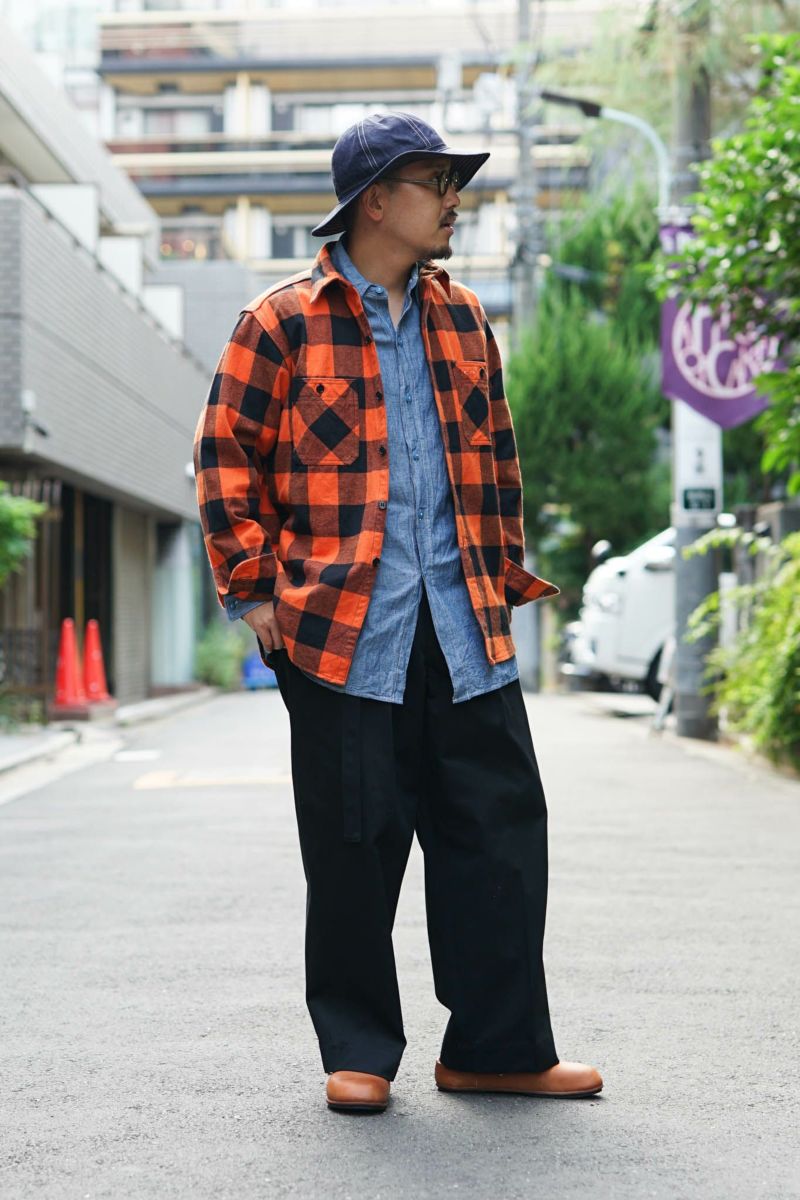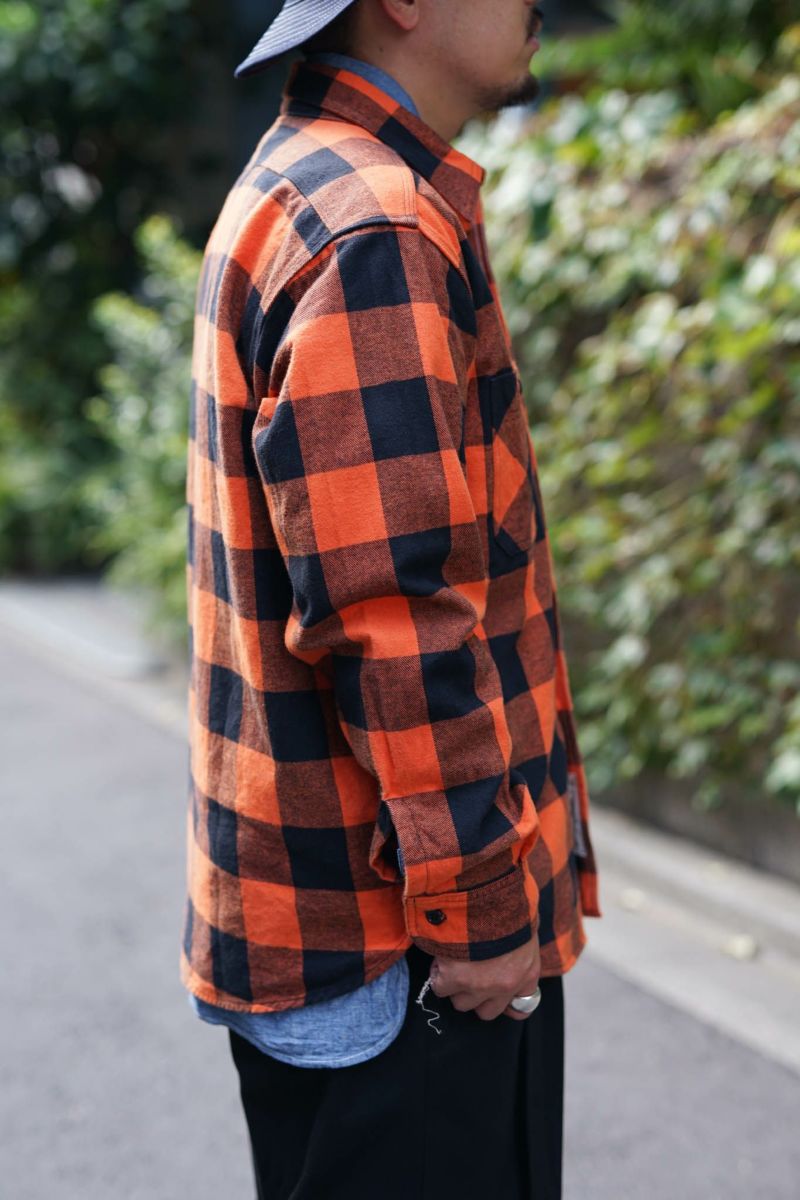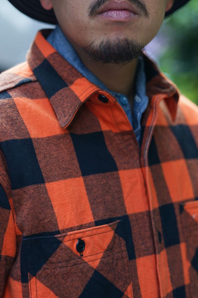 ボンクラ独自の解釈を加えたこのワークシャツは、一見シンプルに見えるものの、細部に至るまでこだわりが詰まっています。生地はネル素材を使用。生地目がしっかりと詰まった厚みのあるネル地で、程よい起毛感が特徴です。暖かみがありながらも通気性に優れ、幅広いシーズンで着用できる汎用性を持っています。