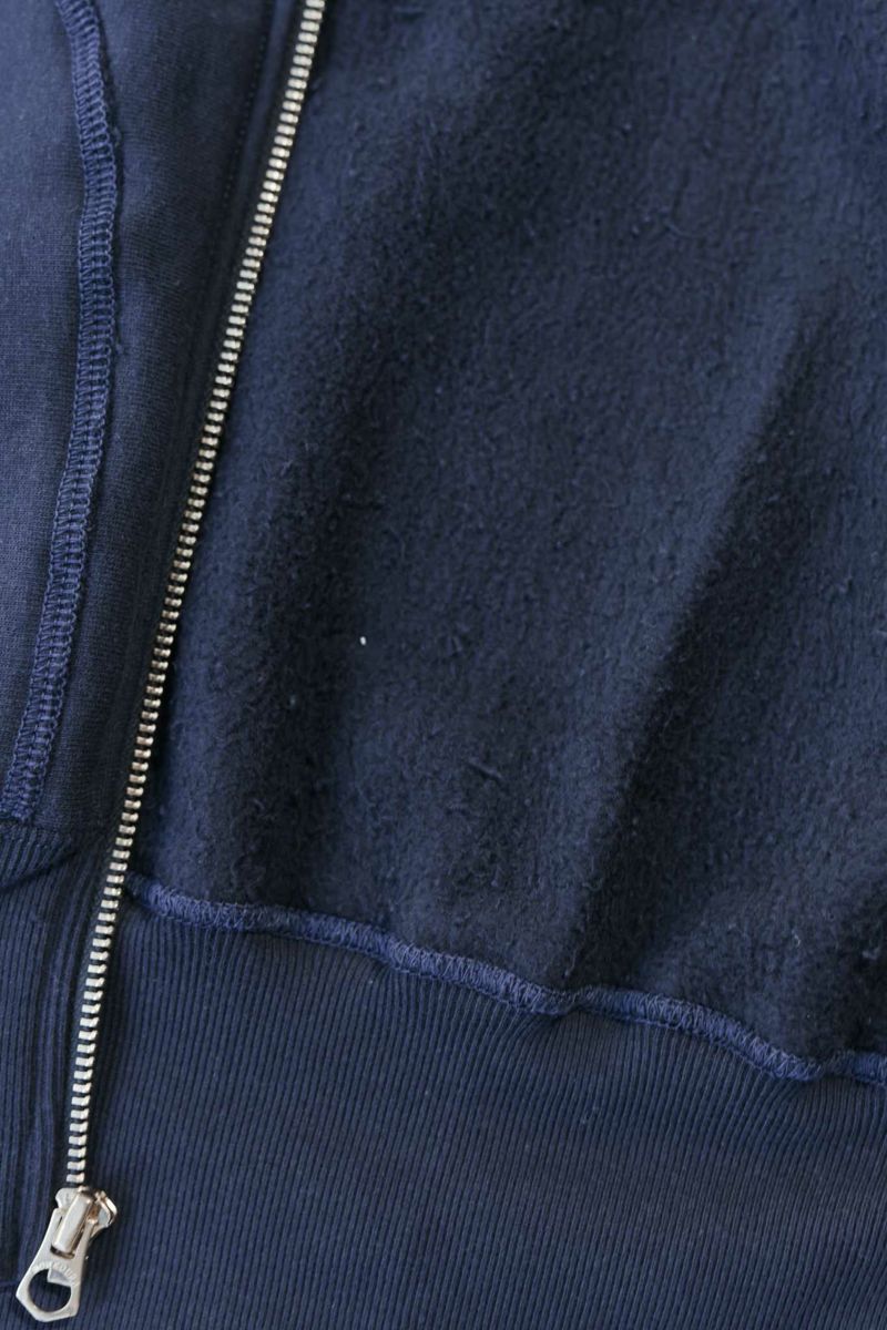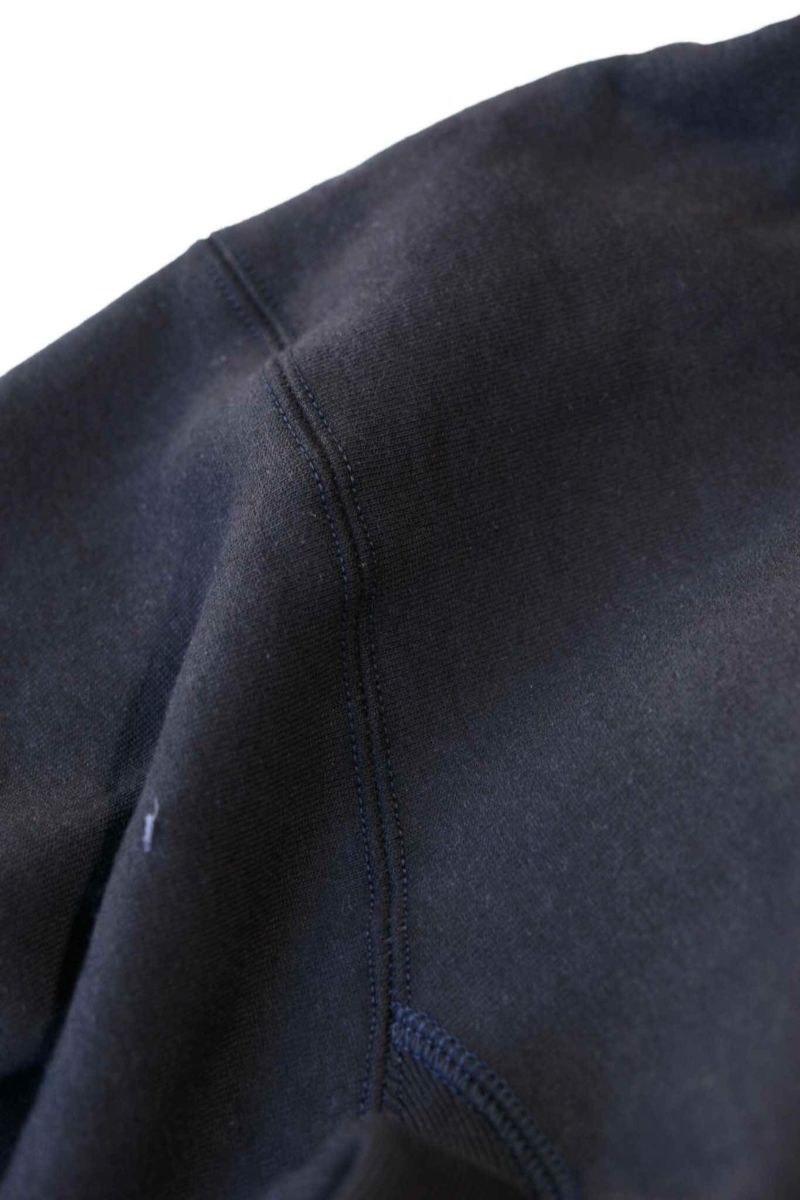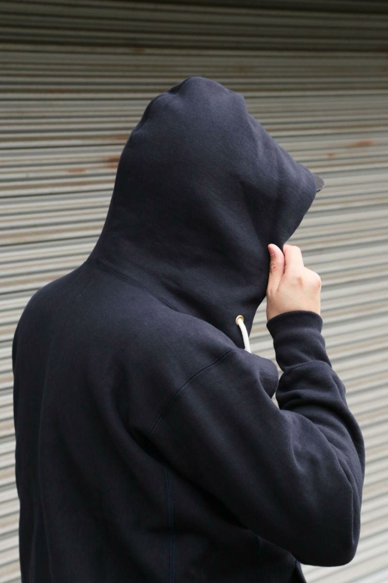 デニムと同じく原綿の配合から糸の捻までこだわった吊り裏毛パーカー。原綿の種類、産地によって質感や手触り、色など変わる中、デザイナー森島氏により組み合わせられ理想の生地に仕上っています。何度も原綿の配合率を変えてできた糸を編み立て、狙った色が出るまで試行錯誤を行い製作。生地の色に深みを持たせるために複数の色を混ぜて表現しています。