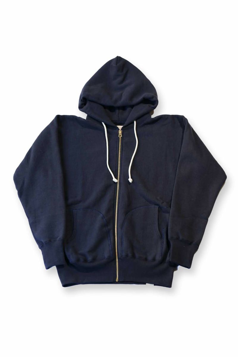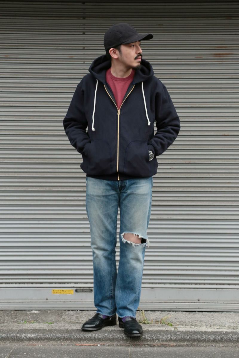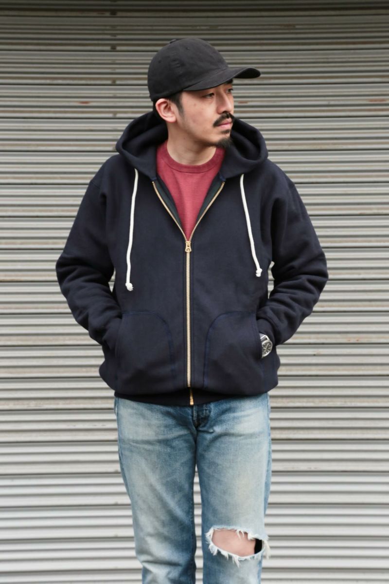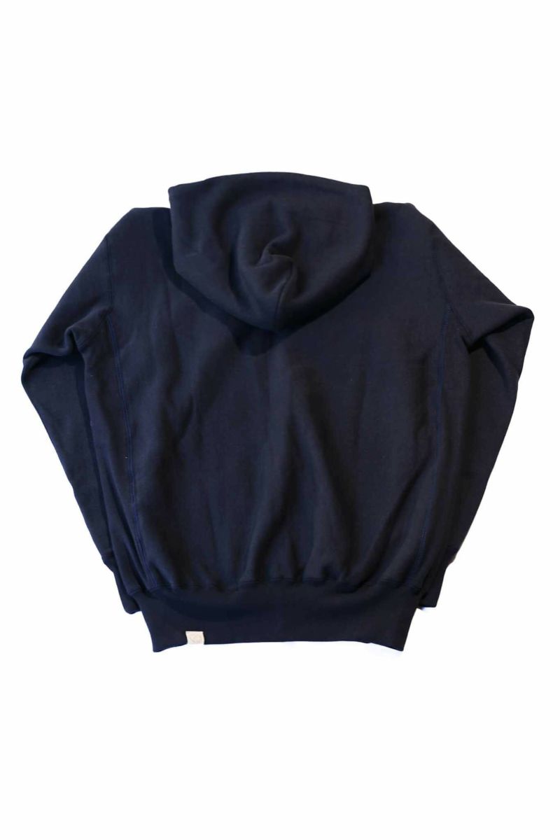 デニムと同じく原綿の配合から糸の捻までこだわった吊り裏毛パーカー。原綿の種類、産地によって質感や手触り、色など変わる中、デザイナー森島氏により組み合わせられ理想の生地に仕上っています。何度も原綿の配合率を変えてできた糸を編み立て、狙った色が出るまで試行錯誤を行い製作。生地の色に深みを持たせるために複数の色を混ぜて表現しています。