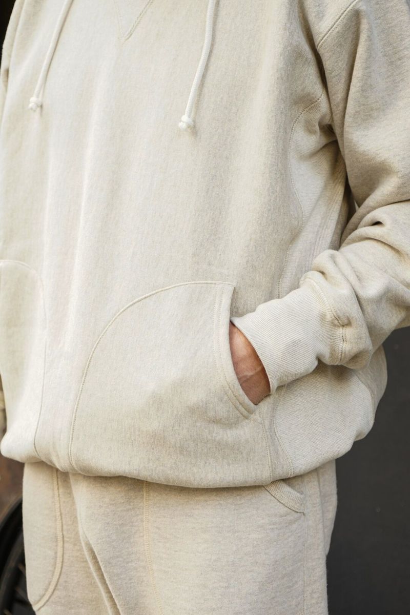 今回は着用期間が長くなるように裏はダブルフェイスではなく丸起毛で仕上げ、ポケットのディテールはカンガルーポケットではなく新たにセパレートポケットの仕様になっています。