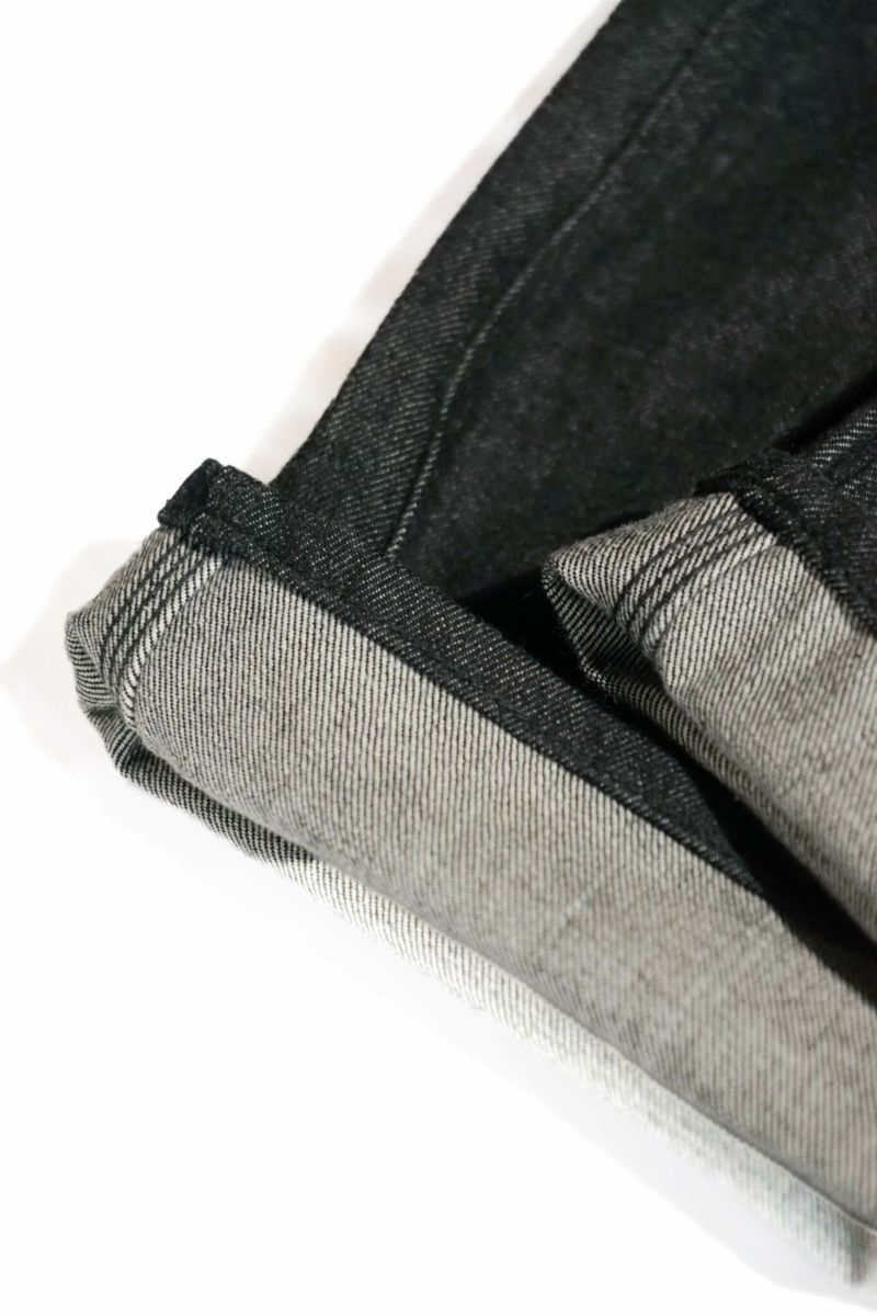 深めのハンドポケットや少し浅めのコインポケット、左右で大きさを変えたサイドポケットなどこだわりのディテールが散りばめまられています。フロントトップにはオリジナルのスナップボタンやジップが付くほか、バックのパッチポケット右側にはBONCOURAネームが入ります。
