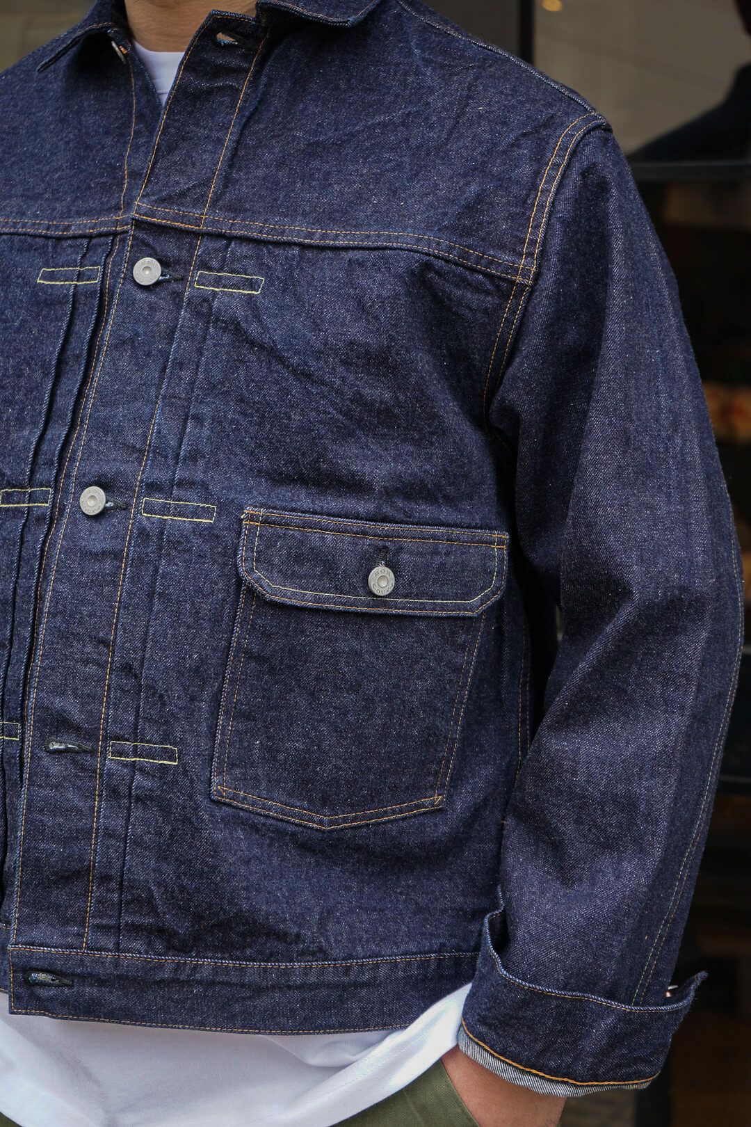 パーツも勿論妥協無くBONCOURA謹製オリジナルパーツを使用。着込んで行くことでパーツもデニムと同じようにエイジングしていきます。縫製はジーパン同様綿糸縫製にこだわることでデニム生地と共に縫製糸もエイジングしていきます。BONCOURAのこだわりと熱量が詰まったGジャンを是非育てて頂きたいです。