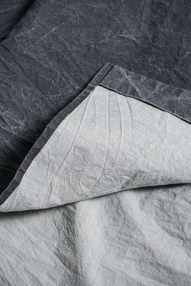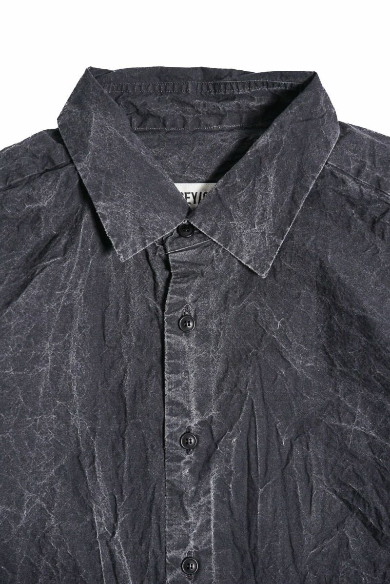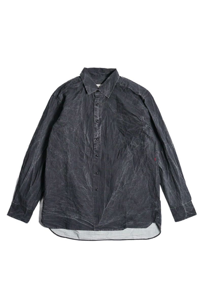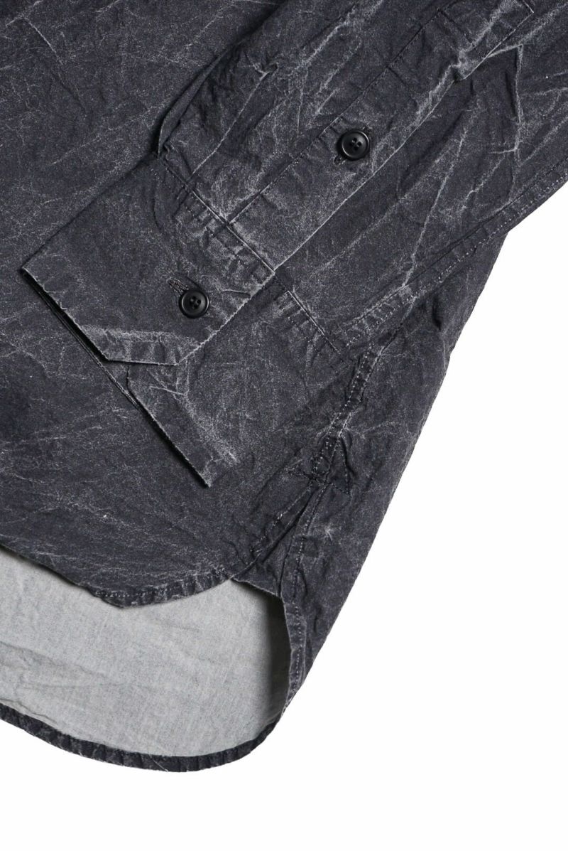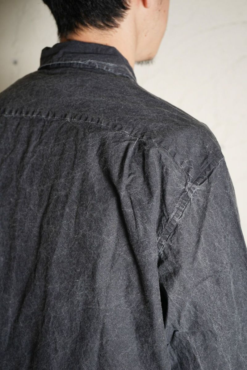 色落ちやアタリをプリントで表現したエクスクルーシブの高密度コットン生地を使用したBIG RACCOURCIE SHIRTです。シンプルながら1枚でも抜群の存在感を放つCASEY CASEYらしいシャツ。製品洗いにより、着初めから自然な風合いです。