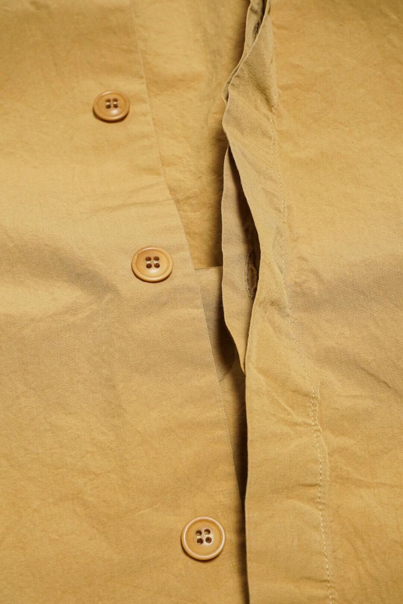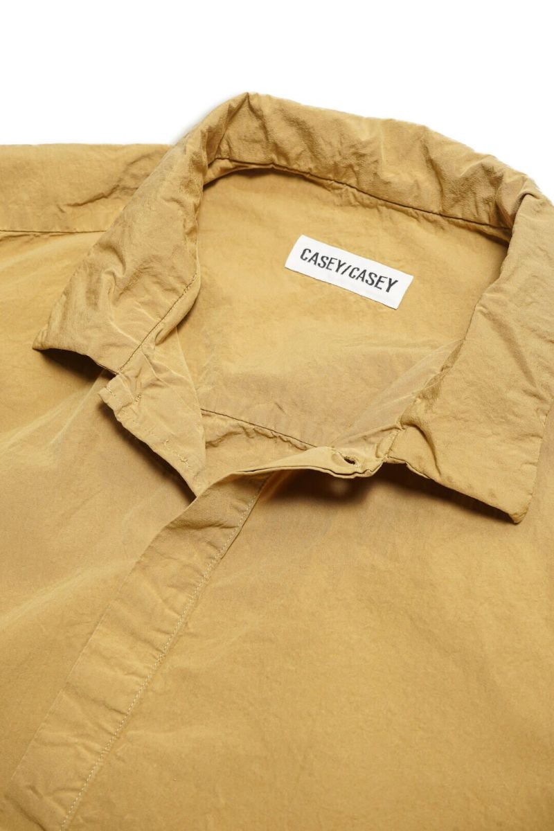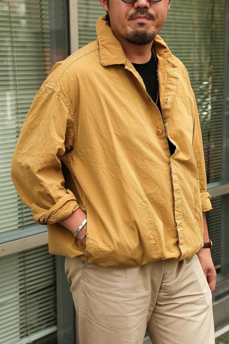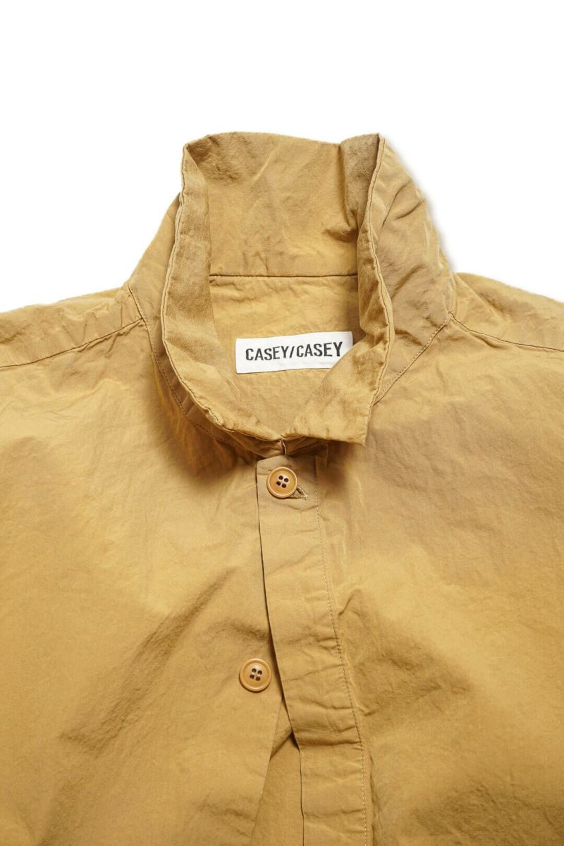 ボリュームあるシルエットのブルゾン型シャツ。比翼仕立てによってCASEY CASEYらしいクリーンでミニマルな印象となっています。素材はクリスピーでドライな質感が特徴的なブランドを象徴するペーパーコットン。仕上げのウォッシュによる自然なシワ感と風合いが魅力的です。