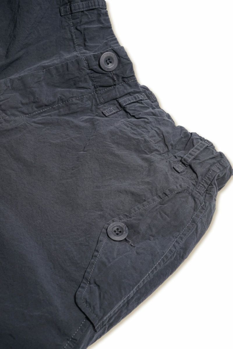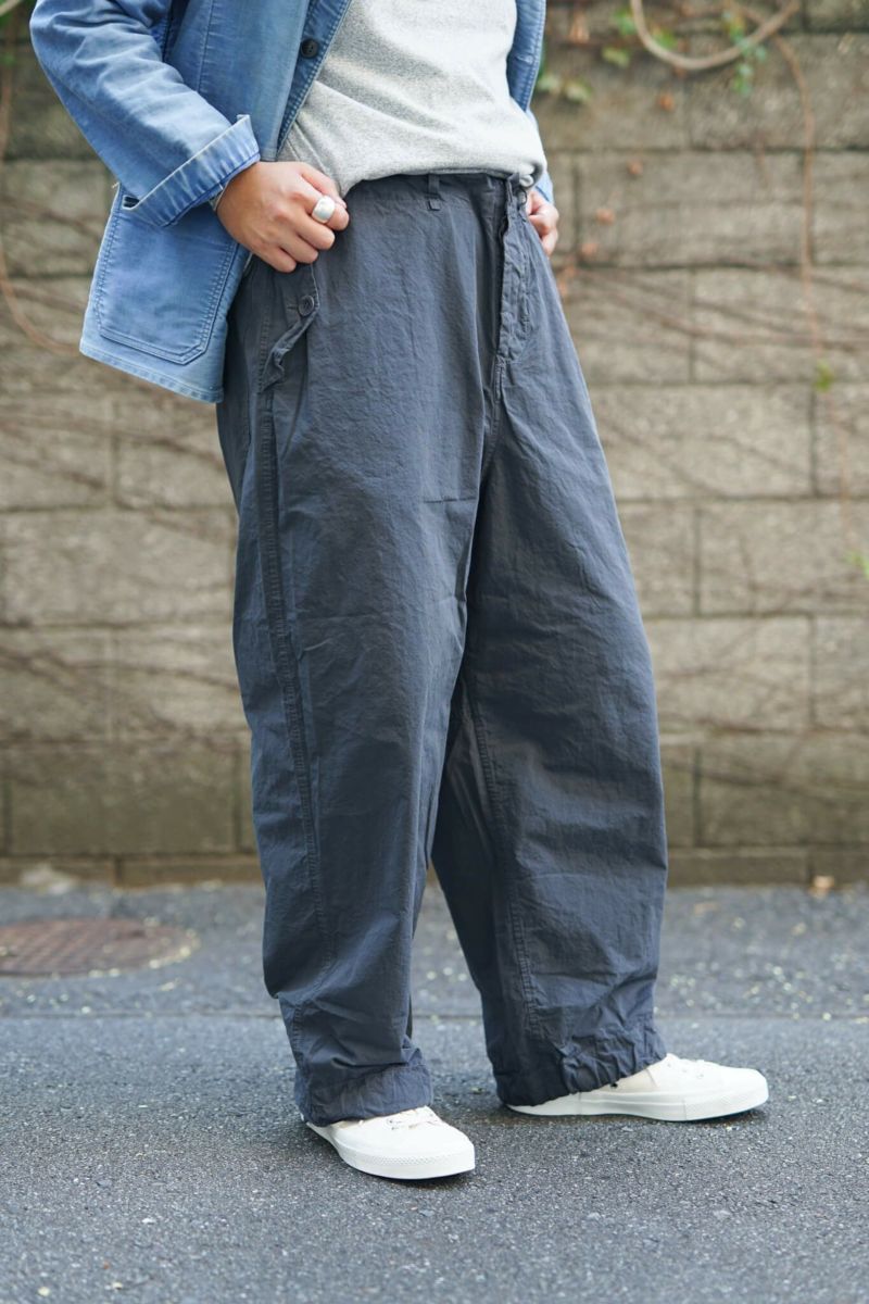 ミリタリーパンツを彷彿とさせるリラックスしたシルエットのドローストリングパンツ。ウエストと裾口のドローストリングによりボリュームを調整でき、遊び心のある着こなしを可能にします。素材はクリスピーでドライな質感が特徴的なブランドを象徴するペーパーコットン。仕上げのウォッシュによる自然なシワ感と風合いが魅力的です。