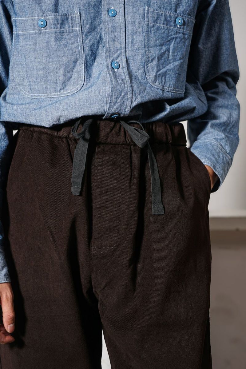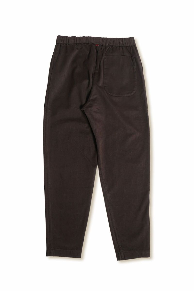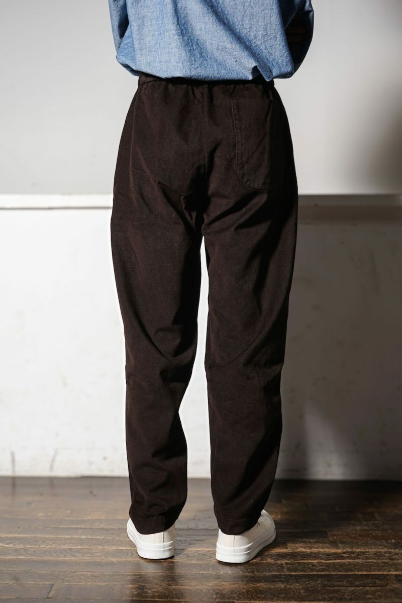 スタイリッシュで洗練されたシルエットのイージーパンツ。シンプルながら、ボタンフライ、スラッシュフロントポケット、バックパッチポケットと充分な機能性を備えたデザイン。素材は、通気性があり、柔らかな質感のコットン×リヨセル混紡生地を使用しています。ウエストは伸縮性があり、内側のドローストリングで調整可能です。