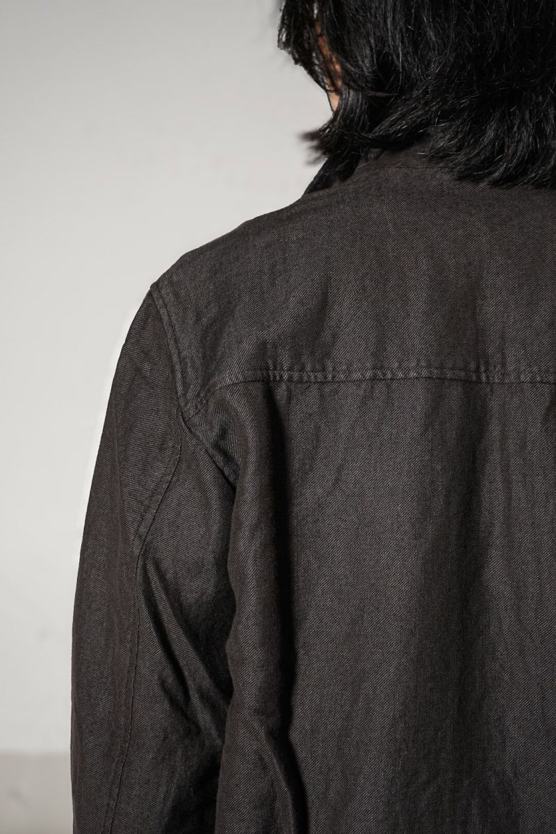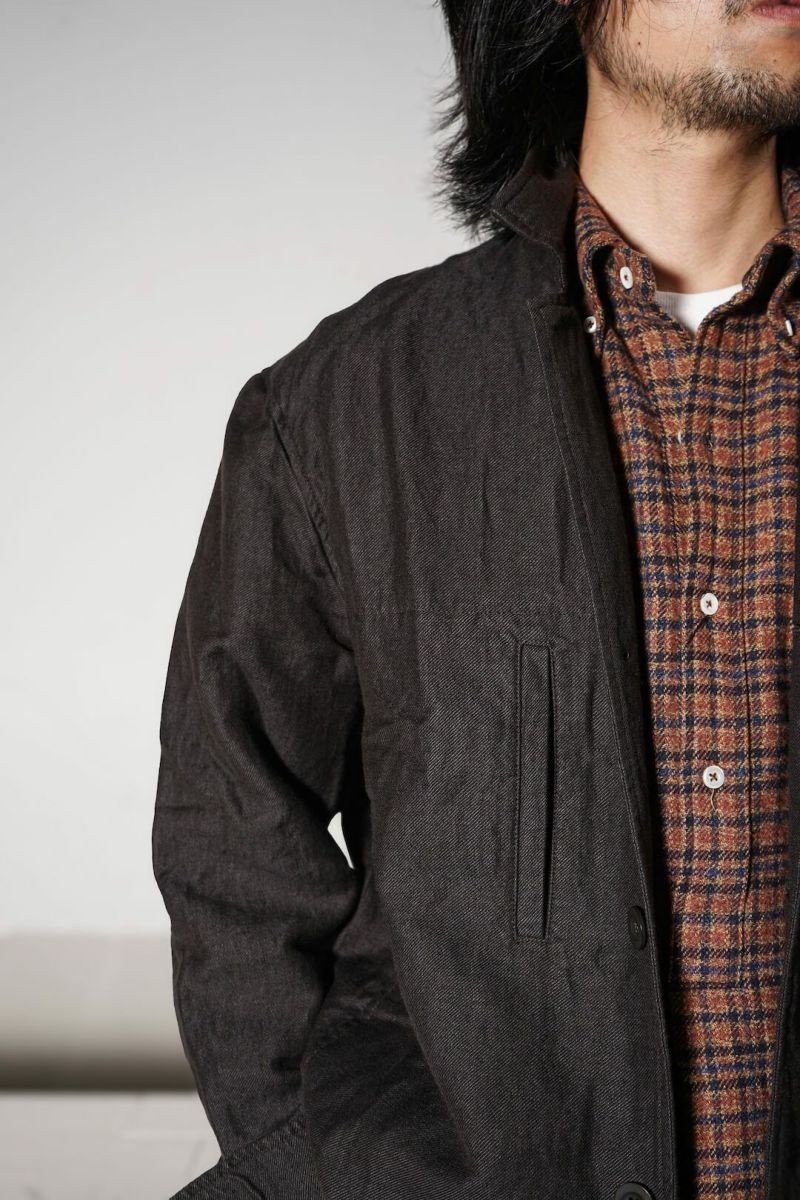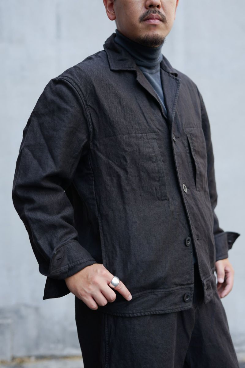 クリーンでミニマルな印象のショート丈ジャケットです。調整可能な袖口とウエストタブ、実用性を高める胸ポケットが付属。素材はリネンの通気性とバージンウールの暖かさを両立した混紡生地を使用しています。深みのある風合い豊かな生地感が魅力的です。