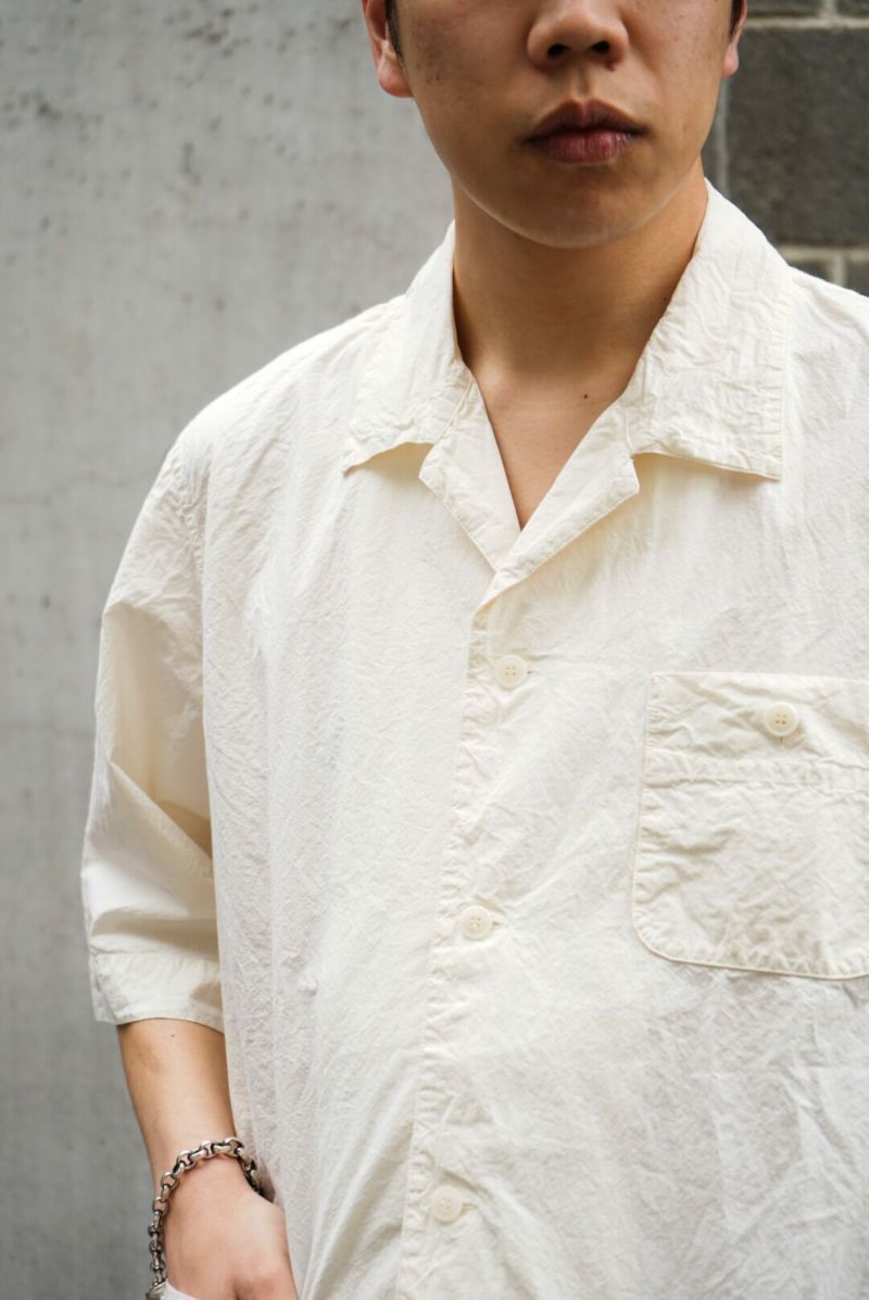 ゆったりとしたオーバーサイズがCASEY CASEYらしい開襟シャツ。エクスクルーシブの高密度コットン生地は、洗えば洗うほどに風合いが増していきます。ボタンにはコロゾボタンを使用しています。