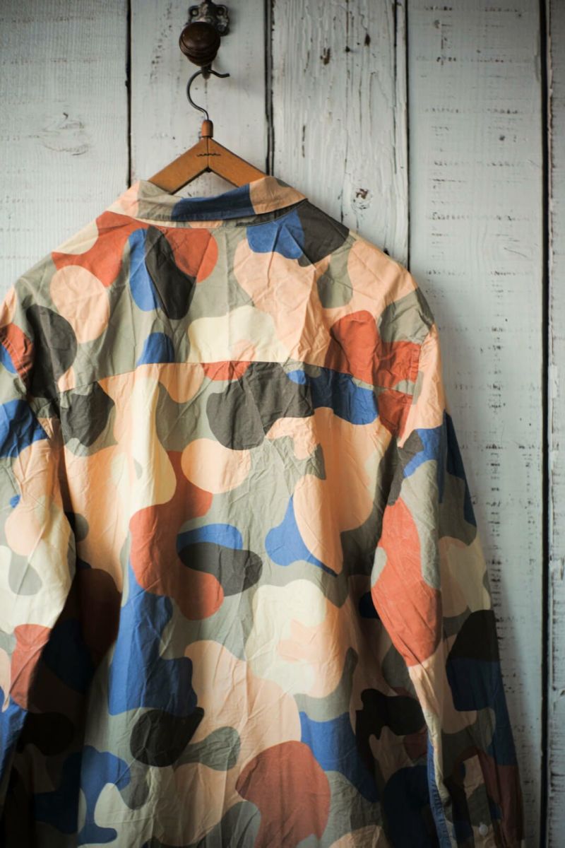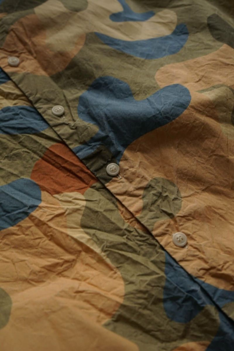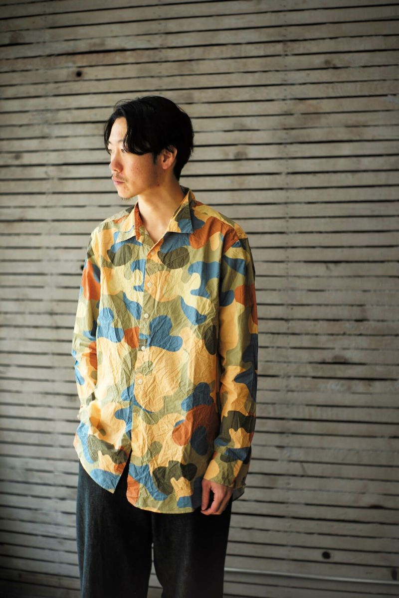 CASEY CASEYから新作のシャツが届きました。ミリタリーの色味が色濃く反映されたカモフラージュ柄を落とし込んだ一枚。ミリタリーが持つ無骨さを感じさせないのは、CASEY CASEY特有の柔らかい空気感にあります。色味を落ち着かせてありそうでないパターンに。ゆったりとしたシルエットもまたCASEY CASEYらしい部分です。一枚で着てもよし、ジャケットのインナーに着てもコーディネートに映える一枚です。
