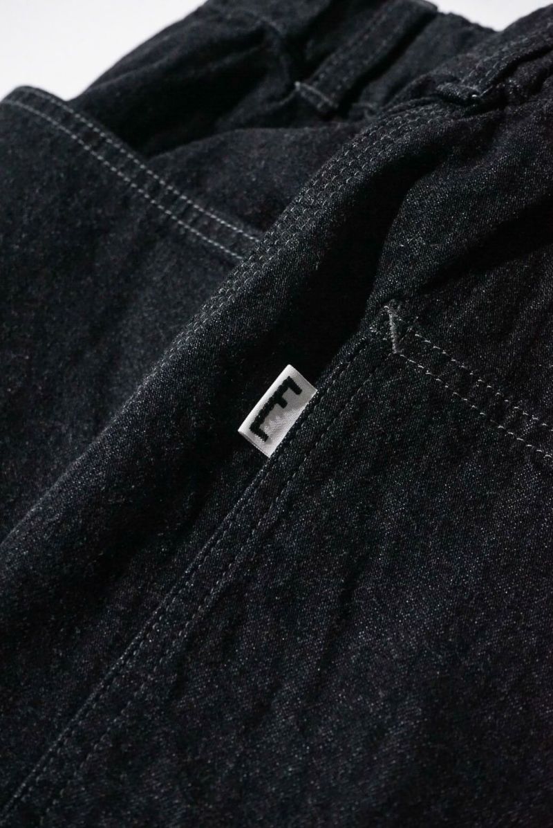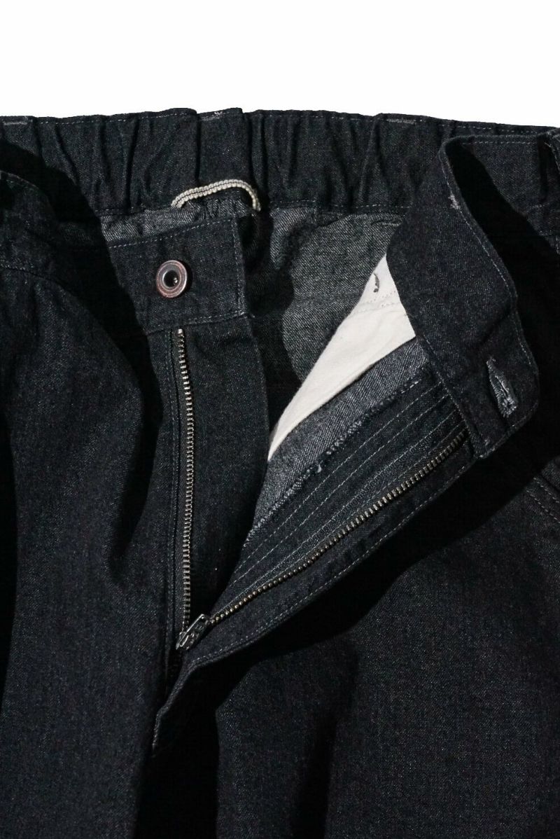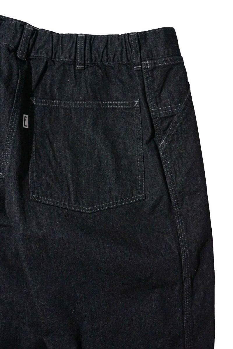 ウエストの素材は、落ち綿をリサイクルした綿と長綿とをブレンドし糸にした経糸を使用。生地はジェルトデニムをイメージしたワーキングを感じさせる10ozデニム。純度と鮮度のいい青さを表現するために、一度きりで生産するインディゴで染色しています。