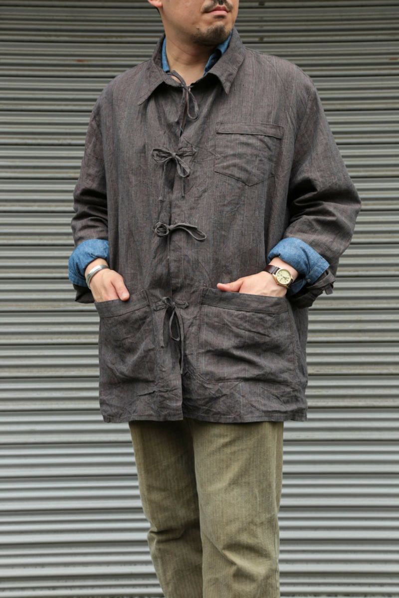 ブルガリア軍のスリーピングシャツがデザインベース。生地はアイリッシュリネンの最高峰であるスペンスブライソンを使用しています。シャツとしてはもちろん、大きめのサイズ感なのでジャケット感覚で使うこともおすすめです。