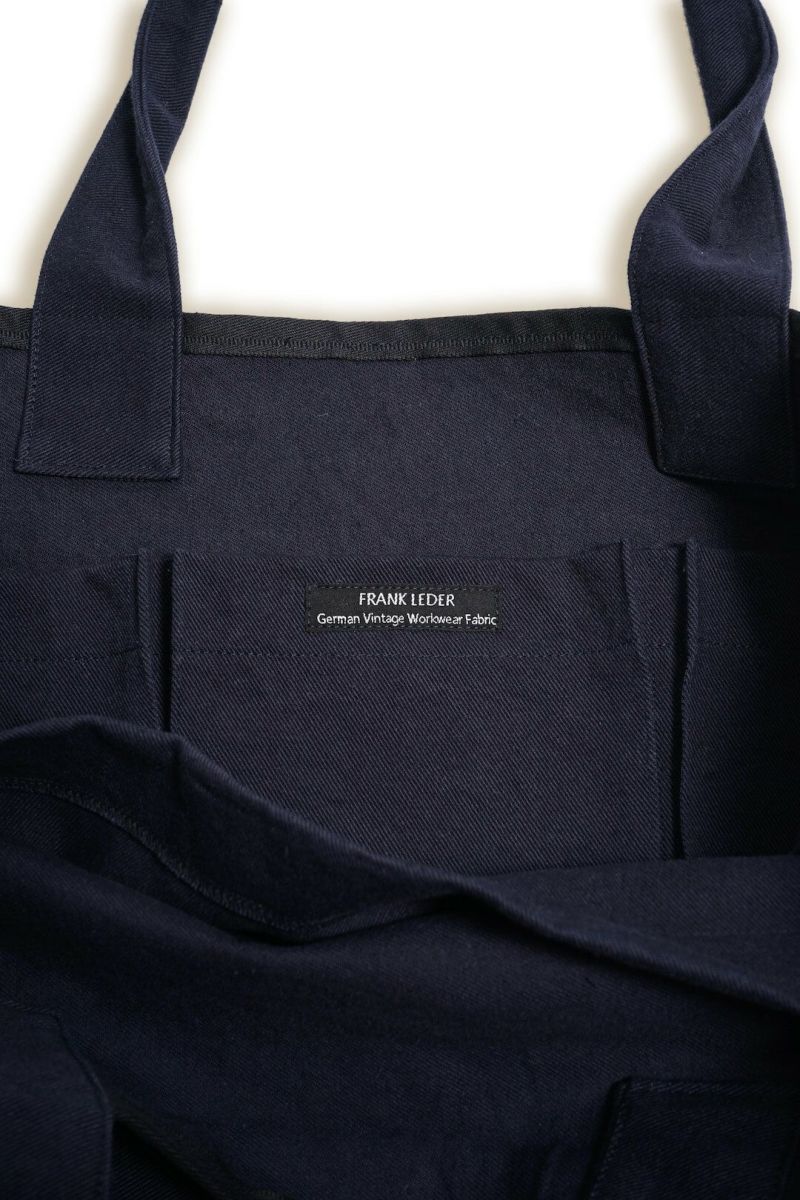 1960年代のドイツのヴィンテージワークウェアの生地を使用したトートバッグ。この生地は、溶接工、錠前屋、自動車タイヤやゴム産業で働く男性など、工業環境で働く金属工の作業服に使われていました。その地域は主に西ドイツのルール地方の工業都市で、これらの工場が立地していました。彼らは主に、ヴォルフスプルクの大手フォルクスワーゲンヴェルクや、メルセデスペンツの自動車を製造しているシュトゥットガルト近郊のダイムラーモトーレンゲゼルシャフトといった自動車産業のために働き、部品を供給していました。