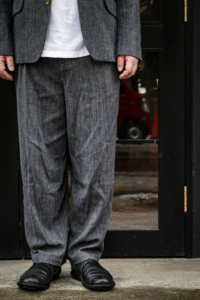 FRANK LEDER(フランクリーダー)らしい、無骨さと上質さが共存した肉厚のリネンファブリックを使用した雰囲気抜群のドローストリングパンツ。同素材のジャケットとセットアップでの着用もおすすめです。