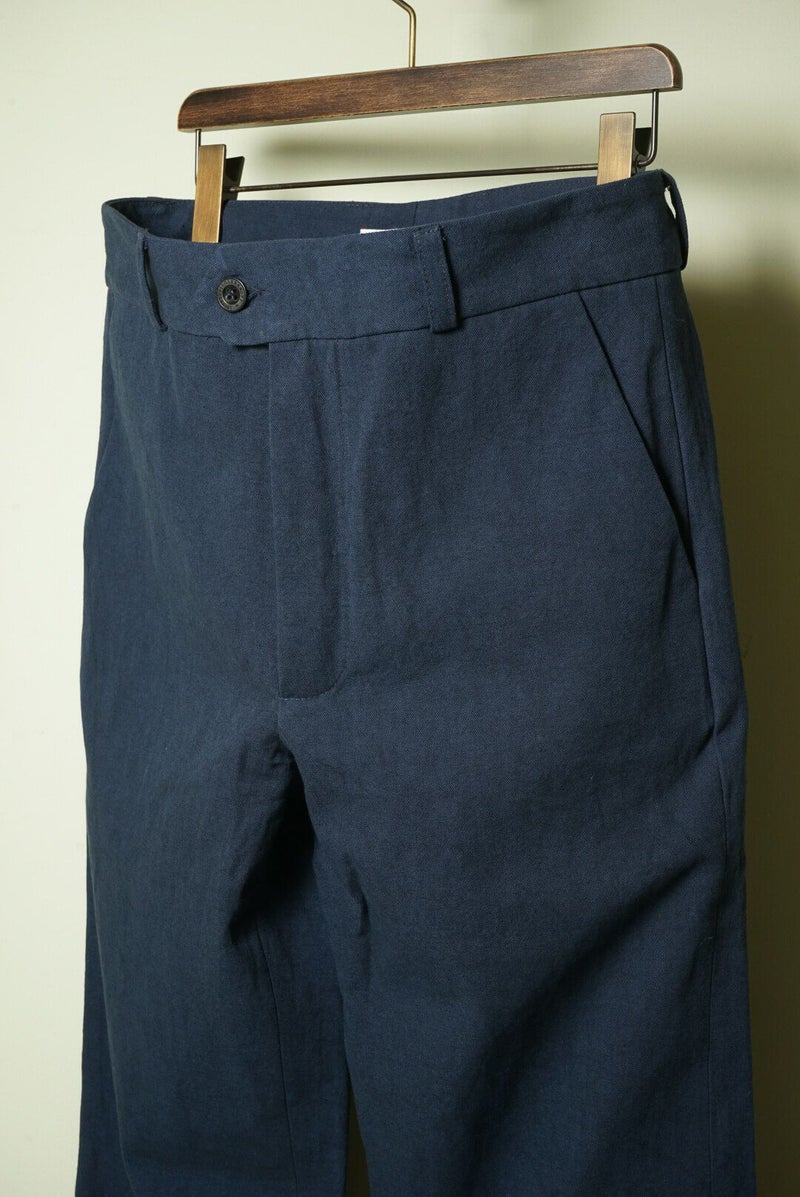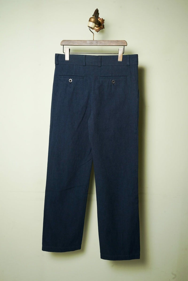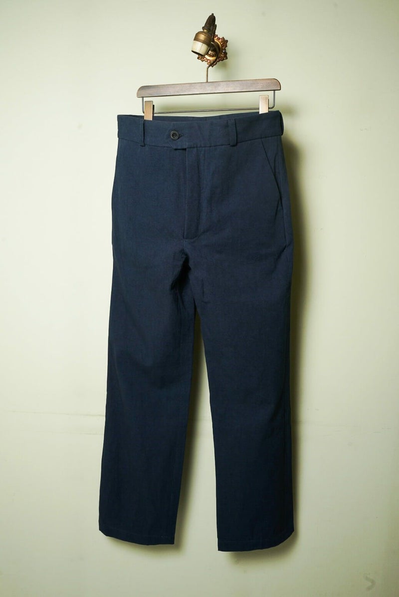 FRANK LEDER(フランクリーダー) "Bernburg / Saale(ベルンブルク / ザーレ)" SPRING / SUMMER このコレクションは、LOOK BOOK を撮影した町の名前にちなんで名づけました。Bernburg/Saale ベルンプルク/ザーレ。ザーレとは、この町を流れる川のことで、その名の通り、ルネッサンス時代の城であるBurg(ブルク)はありますが、ありがたいことに、改装業者の熱心な手はあまり加えられておらず佇まいがあります。1950年代のような雰囲気のドイツの小さくて面白い町を旅する男の物語。父が健業の宇生だった頃のことを思い浮かべ、お金はなくも、過去と現在の健物の歴史と意味を学びたいと熱望し、叔父から借りた自転車と、旅の計画を立てるための道路地図、空腹に耐えるための釣りを持ち、参考にするための写真を撮りながら旅をする物語です。このように学生時代に旅をするというコンセプトは、特に戦後の1950年代に流行したものです。人間が心と知識を広げるための旅です。 FRANK LEDERが選んだ過去のシーズンの興味深いアイコニックな洋服を、アップデートした素材を用いて再び制作したARCHIVE EDITIONシリーズのトラウザーズ。 <素材> 100% COTTON <生産国> MADE IN GERMANY FRANK LEDER / ARCHIVE EDITION TROUSERS PRICE : ¥75,900(税込み) 品番 : 0513002 ARCHIV SS22 B