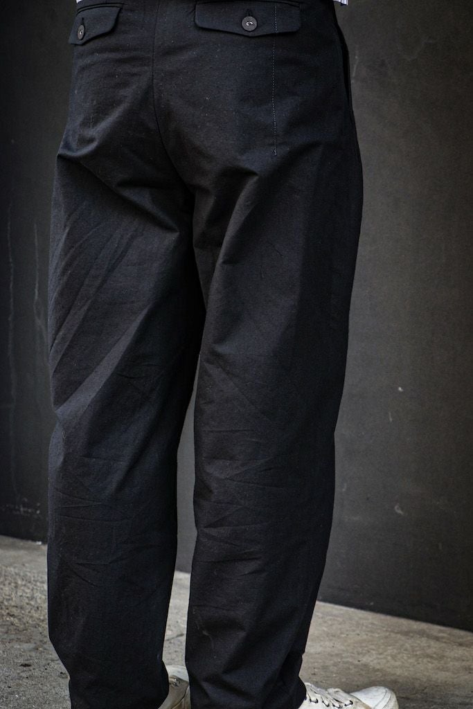FRANK LEDERの代名詞でもある”VINTAGE BED SHEETS”のコレクションです。1960年代に、ドイツのベッドシーツ等に使われていたヴィンテージファブリックを贅沢に使用しています。 今回新色として登場したカラーは”BLACK"無骨な一枚です。ボタンも全てヴィンテージボタンを使用しております。 100% COTTON Frank Leder / 1960's VINTAGE BEDSHEET 2TUCK TROUSERS Price ¥52,800(税込)