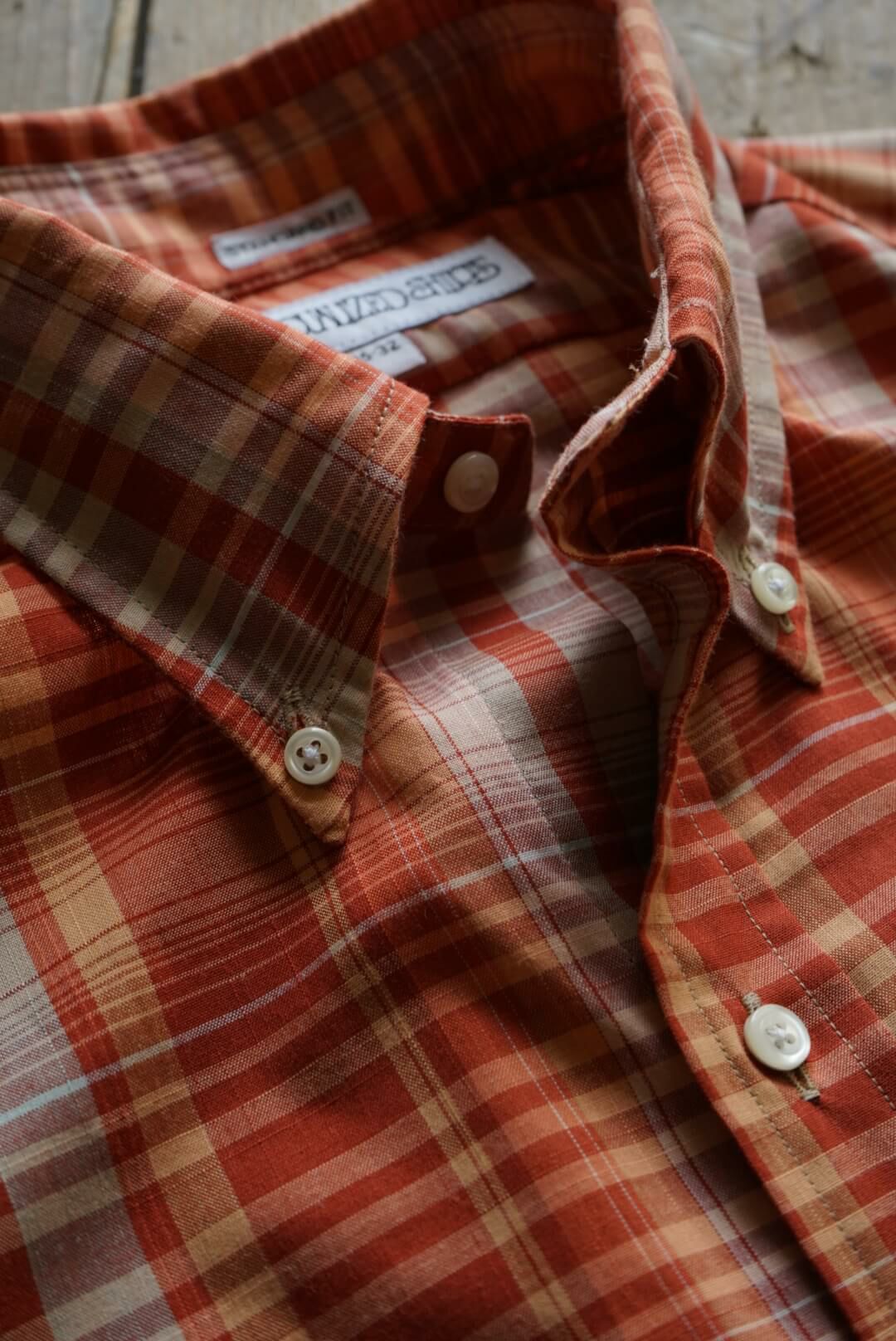 B.Dシャツの原点を作り上げた“B社”の黄金期(1960年代〜70年代)に作られていた B.D.シャツの仕様である「6つボタンのボタンダウンシャツ」をイメージし、通常7つ付くフロントボタンを「6つ」にするという別注をお願いした1着になります。