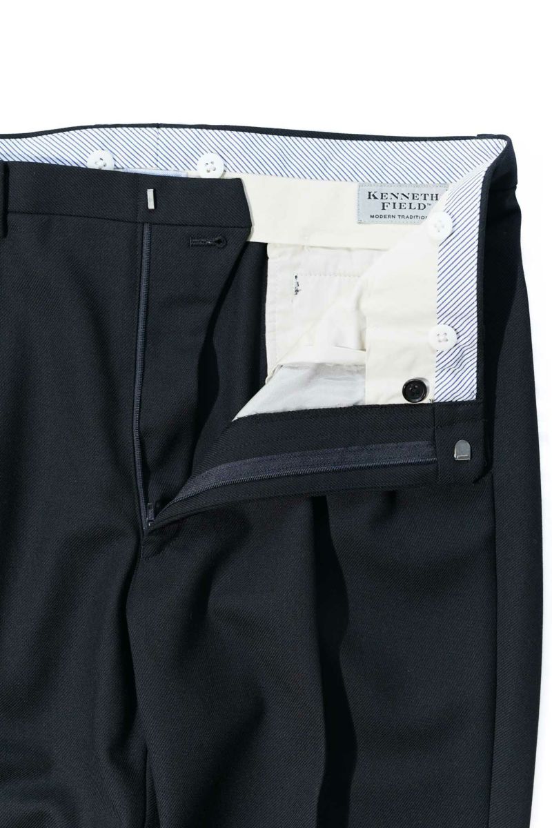 KENNETH FIELDよりミッドナイトブルーのトラウザーが登場。生地には、48番手のウールポリエステル糸を4本強撚して織り上げたサージを採用。 ミリタリーサージを彷彿させるドライなタッチとしなやかさを兼ね備え、鈍い光沢と高い復元力によりシワになりにくく、日常的に扱いやすい点が魅力です。