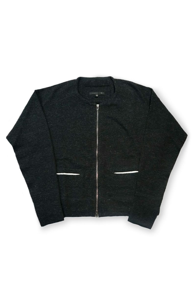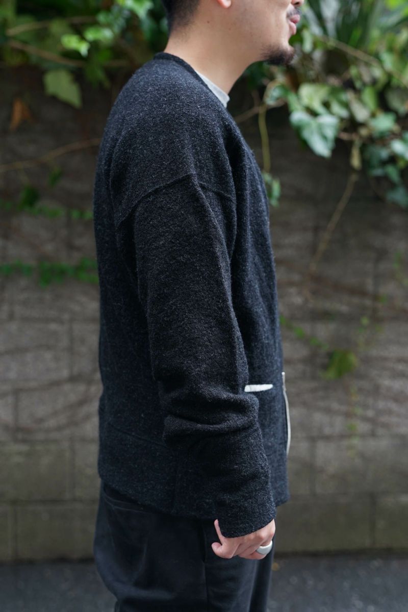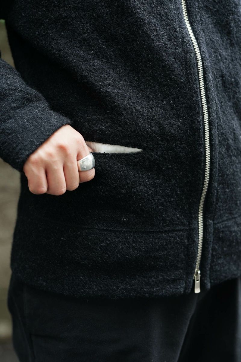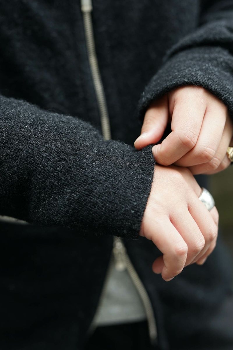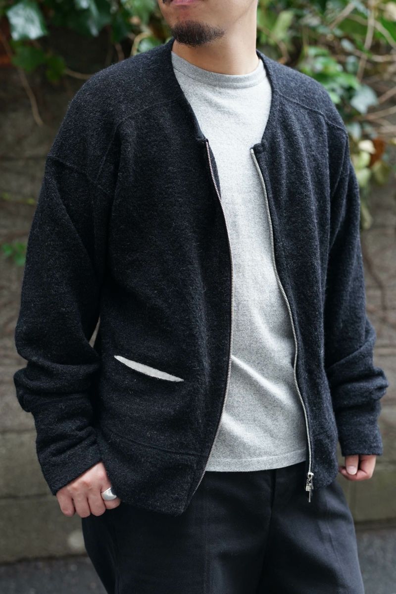 レギュラーフィットのクラシックジップカーディガン。肩は立体的なパターンで構築され、自然なシルエットを演出。前立てはダブルジップ仕様になっています。生地は、ウールでは表現が難しいアムンゼンを上質な素材で実現させたもの。アムンゼン特有の細かな凹凸が生む上品で柔らかな表情が、見た目からも暖かさを感じさせる一着です。