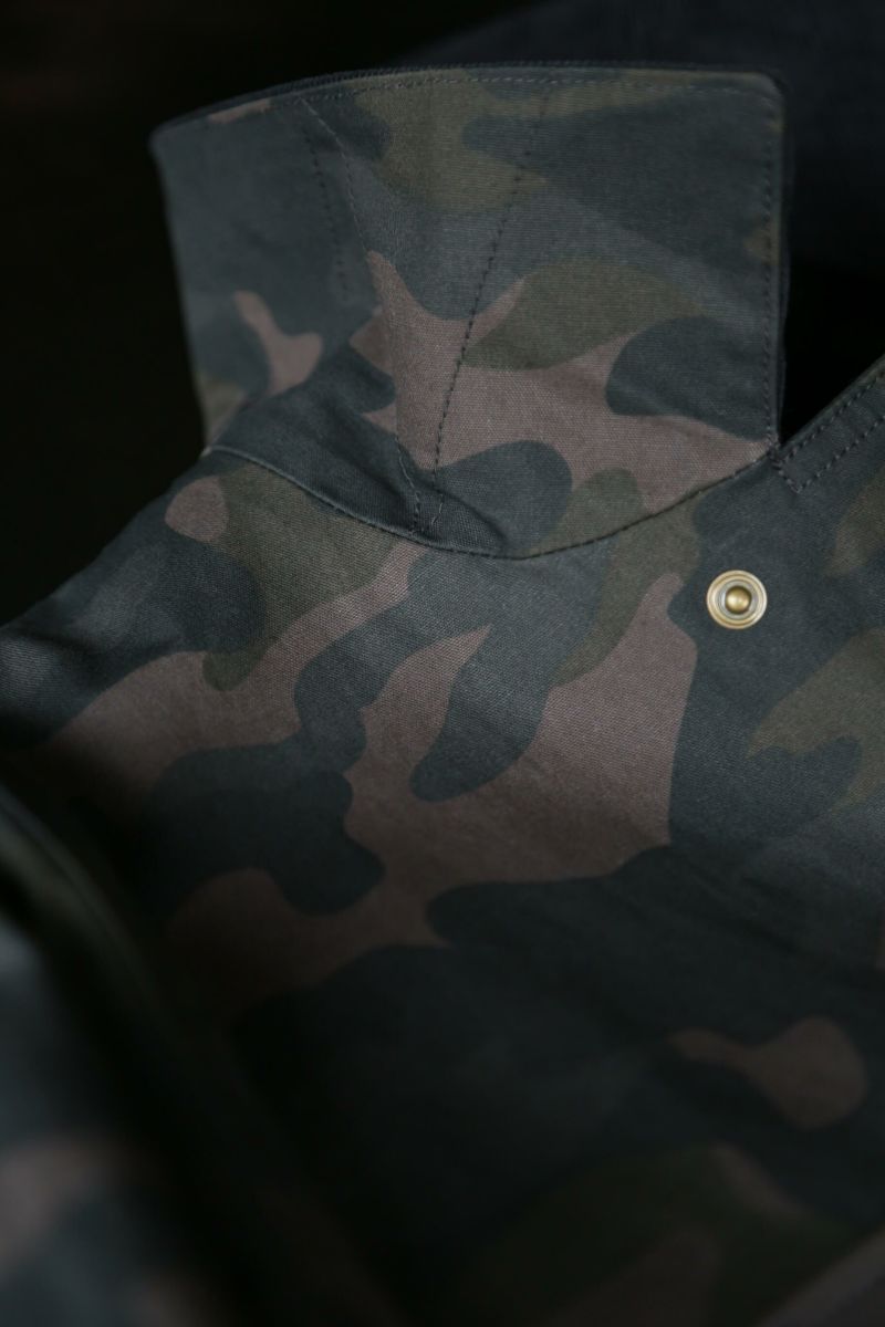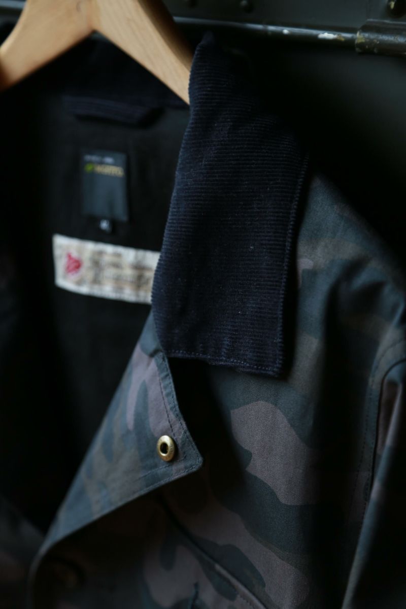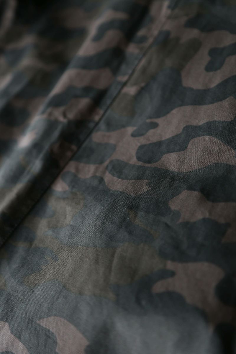 MOJITO(モヒート)がオマージュする”アーネストミラー・ヘミングウェイ”を語る上で欠かす事のできないキーワードである「ハンティング」をデザインに落とし込んだアイテムです。 4パッチポケットの無骨なデザインに、鮮やかなグリーンで切り替えられた衿が目を惹く一着。ヴィンテージのハンティングジャケットをベースに、MOJITO 流のアレンジを随所に効かせた唯一無二の仕上がりとなっています。 目を惹くカモフラージュパターンは、BRITISH MILLERAIN社を代表するカモフラージュ柄のイミテーションワックスドコットンも代名詞となっており、それぞれの代名詞が交わり、他には無い1着に仕上がっております。ユニークなデザインです。 COTTON 100% ※こちらの商品はブログでも詳しくご紹介しております。 https://archstyle.tv/tokyo/